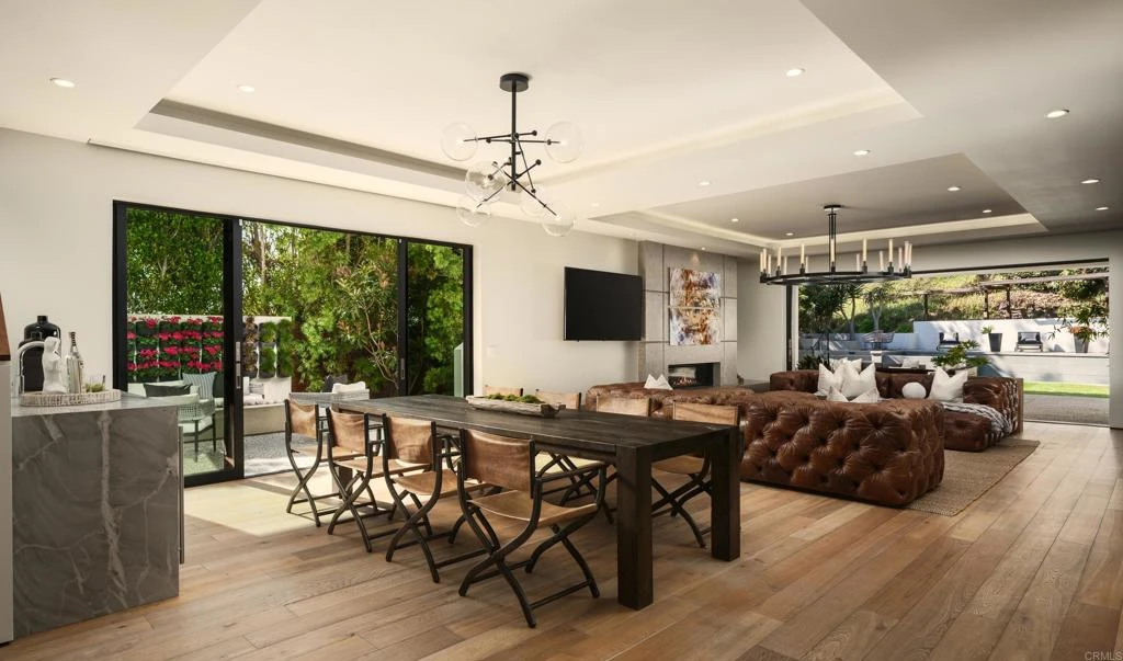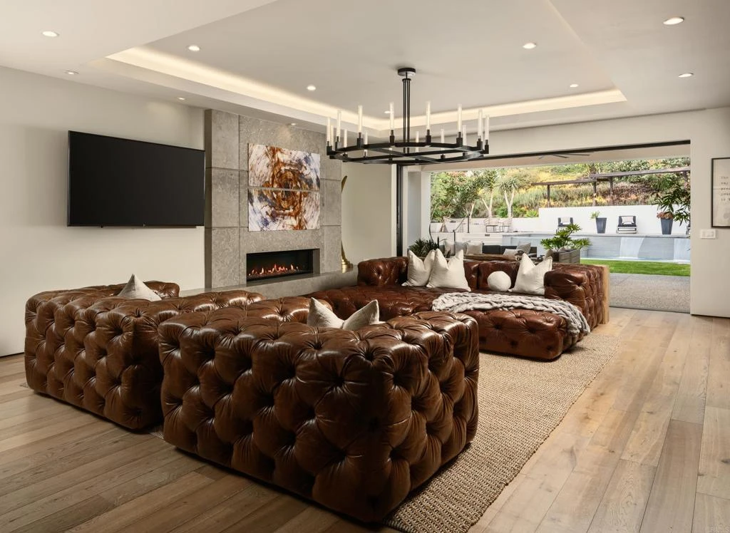 Ocean views and modern coastal design define this exceptional residence, offering effortless indoor-outdoor living in one of La Jolla’s most desirable neighborhoods. Set on a gently sloping lot, the thoughtfully designed floor plan centers around a dramatic great room with a chef’s kitchen featuring an oversized island, double dishwashers, and generous prep space, flowing into the family room and dining areas. Sliding pocket doors and mitered windows fill the home with natural light while opening to expansive terraces with multiple firepit seating areas, a covered patio with heaters, and an outdoor kitchen with built-in BBQ, creating ideal spaces for year-round entertaining. The layout offers two ensuite bedrooms and a private office with its own exterior entrance on the main level, plus three additional ensuite bedrooms upstairs, including the primary suite with an ocean-view terrace and spa-inspired bath featuring dual water closets. Additional amenities include an elevator, wine room, pool bath, outdoor shower, a laundry room with two washers and two dryers, and a gated three-car garage with a turntable. Featuring modern construction and premium materials throughout, this residence offers a rare opportunity to own a newer home in the heart of La Jolla.