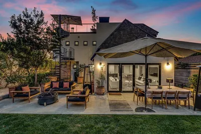 Elegant 4 bed, 3 bath Tudor-style La Jolla home with European charm, just a short walk to the beach, dining, and shops. Features two living areas, gourmet kitchen, office with ocean peek views, and a lush backyard with fruit trees, garden, fire pit, BBQ, and multiple seating areas. A rooftop deck offers ocean and sunset views. Open layout and indoor-outdoor flow make it ideal for entertaining or relaxing. This home features one king and three queen beds, a walk-in closet in the primary suite, and an executive office with peek ocean views. Driveway parking for two and ample street parking add convenience. At the center of the experience is a rooftop deck, an elevated retreat accessed via a spiral staircase from the backyard. Overhead heaters allow for cozy mornings or evening gatherings in the fresh coastal air. The first living room, located just off the entry, features two cozy sofas and a reading nook. Straight ahead, the main-level guest bedroom includes a queen bed, ensuite bathroom with walk-in shower, and plenty of natural light. To the left of the entry, the home opens into a into a spacious kitchen, dining area, and second living space with a smart TV and a full wall of floor-to-ceiling windows that open to the backyard for seamless indoor-outdoor flow. Additional amenities include in-home laundry discreetly tucked into the kitchen and one smart TV. Please note: this home is not pet-friendly. Sleeping Accommodations (Maximum Occupancy 8): Bedroom 1 - 1 King bed Bedroom 2 - 1 Queen bed Bedroom 3 - 1 Queen bed Bedroom 4 - 1 Queen bed There are a total of 3 bathrooms