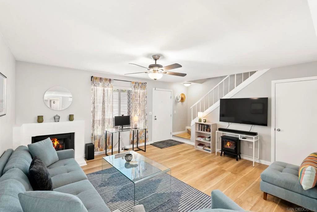 Move-in ready remodeled townhome in La Mesa with 2-car garage, additional parking, and a large private patio. Inside, the home features luxury vinyl flooring, solid wood kitchen cabinetry, quartz countertops, stainless-steel appliances, and beautifully renovated bathrooms with custom glass shower enclosures. Major improvements include updated plumbing, a new water heater, energy-efficient mini-split heating and cooling systems, double-pane windows, ensuite bathrooms in both bedrooms, generous storage, recessed lighting, and convenient access from the garage to the private outdoor space. This upgraded townhouse-style residence is located within a gated community with low HOA dues, offering both privacy and convenience.