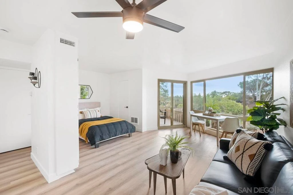 VIEWS, VIEWS, VIEWS! Welcome to this beautifully remodeled 2nd-floor Studio Condo with beautiful views of Lake Murray and Cowles Mountain! The kitchen features shaker soft close cabinets, stainless steel appliances, and gorgeous quartz countertops. Newly installed vinyl plank floor and windows. The open-concept design creates a flexible living area you can customize to your needs. Delight in the abundant natural light streaming through the new windows and relax on the patio enjoy the beautiful views while sipping on a cup of coffee. Enjoy low HOA that include wonderful amenities, including 5 pools, 4 spas, gym, sauna, pool table, hiking trails, car wash area, tennis & pickle ball courts and a large recreation room with kitchen. Centrally located, Lake Murray, close to shopping, Starbucks, dining, freeway access, schools, and public transportation.