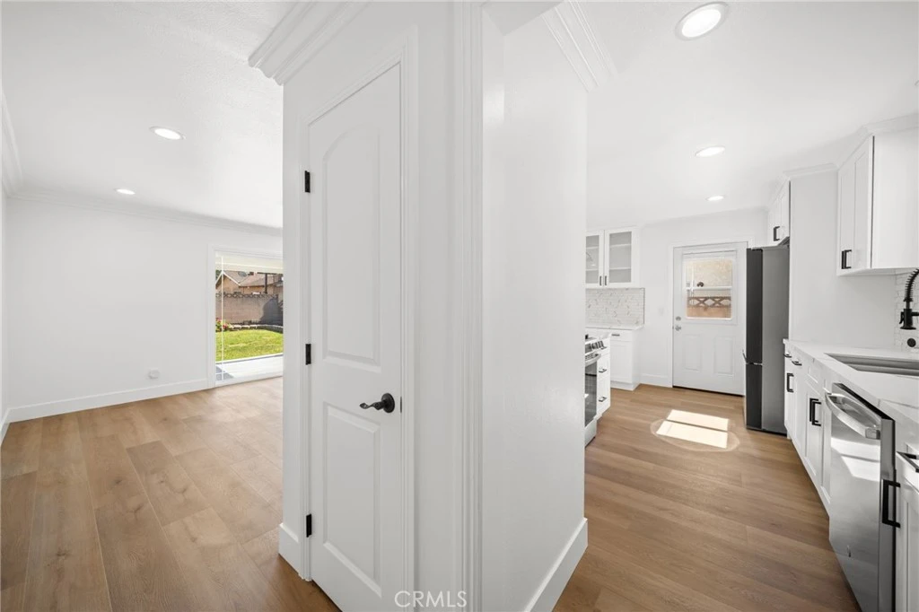 Welcome to this beautifully and thoughtfully remodeled home located in a quiet, family-friendly neighborhood in La Mirada! This turnkey 3-bedroom, 2-bathroom residence sits on a spacious lot and has been craftfully remodeled with modern finishes and attention to detail throughout. The home features new laminate flooring throughout, creating a seamless and stylish look while offering durability and easy maintenance. Double-pane windows provide energy efficiency and allow plenty of natural light to fill the home. The remodeled kitchen showcases granite countertops, ample cabinetry, and a layout designed for both everyday living and entertaining. The primary bathroom has been tastefully renovated with travertine tile and modern bronze finishes, creating a relaxing, spa-like atmosphere. The fireplace has also been beautifully done, serving as a warm and inviting focal point in the living area. Step outside to a large backyard perfect for entertaining, complete with a covered patio ideal for summer BBQs, gatherings, or relaxing evenings outdoors. The yard also features mature fruit trees ready to enjoy, adding charm and character to this wonderful outdoor space. This move-in-ready La Mirada gem offers comfort, style, and space—don’t miss the opportunity to make it yours!