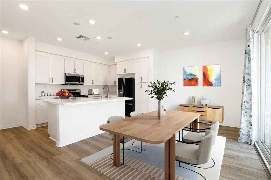 Welcome to this stunning, newly constructed townhouse-style condo located in the heart of La Puente. Built in 2024, this desirable end-unit offers an abundance of natural light and modern design throughout. The main level features a stylish kitchen equipped with stainless steel appliances, white quartz countertops, and a center island that opens to the dining area and a private balcony—perfect for entertaining. The adjacent living room boasts recessed lighting and sleek laminate flooring, creating a warm and inviting space. Upstairs, the spacious primary suite includes a dual-sink vanity, private water closet, large walk-in shower, and a walk-in closet. The secondary bedroom also features its own ¾ bathroom for added comfort and privacy. Additional highlights of this home include: Attached two-car garage with direct access, owned solar panels for energy efficiency, custom window blinds, convenient guest powder room, stackable washer and dryer, tankless water heater, ample storage throughout, close proximity to guest parking. With a low HOA of just $319/month, this home is ideally situated near Sunshine Park, 99 Ranch Market, and offers easy access to the 60 Freeway. Don’t miss your chance to own this move-in-ready gem. A must-see to truly appreciate!
