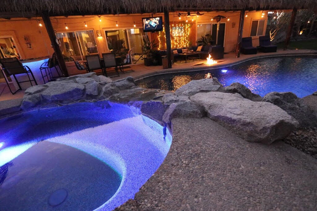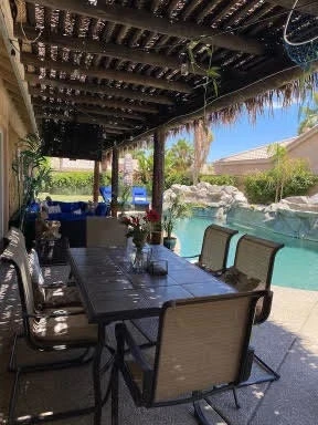 This amazing house has it all! Your ultimate relaxation pad has just hit the market. With a central location near local schools, churches, and even restaurants, you will never have to stray far from home. This turnkey rental has an incredible outdoor kitchen with a built in entertainment system. There's even a billiards table. The pool is the perfect place to hang out with friends and family in the warm desert sun. The home has plenty of parking INCLUDING a 40 foot RV space. Location is everything and this home is located within 7 miles of both Acrisure Arena and all your local music festivals in Indio. You'll never grow tired of viewing the Santa Rosa and San Jacinto mountains.