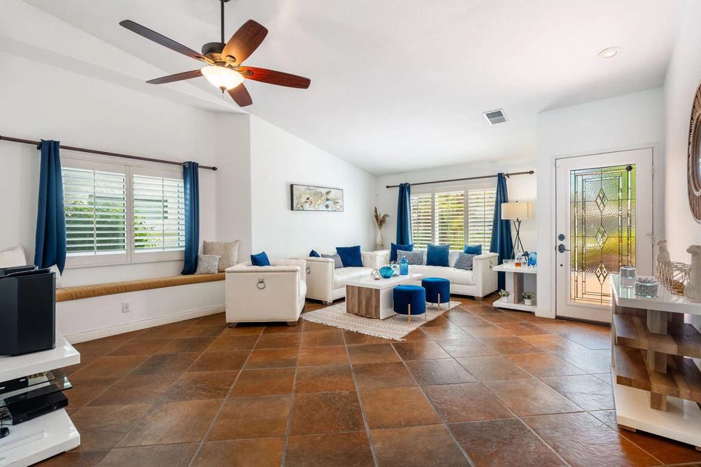 Don't miss this fantastic opportunity to lease long-term or (31 days +) residence in Lake La Quinta! Available now for yearly lease $6,500 furnished, or Seasonal $8,300. Privately located on a cul-de-sac, this charming residence offers 3 bedrooms, 2 bathrooms, and a thoughtfully designed layout perfect for extended stays. Spacious master suite with a king-size bed, walk-in closet, and dual vanities. Guest Bedroom 2: queen-size bed, and Guest Bedroom 3: queen-size bed plus a bunk bed - ideal for families or guests. Open-concept kitchen with quartz countertops, ample cabinetry, and stainless steel appliances. Washer and dryer included for your convenience. Step outside to enjoy breathtaking mountain views that frame the expansive backyard, featuring a sparkling pool and spa, a covered patio ideal for entertaining, and impeccably landscaped grounds. Non-heated pool. This premier gated community offers a recreational lake, stunning views, a manned gate, and security patrol. The Chateau restaurant is within walking distance and offers patio dining overlooking the lake. $250 cap on utilities paid by the landlord for seasonal; any amount over will be the tenant's responsibility. $350 non-refundable cleaning fee. The security deposit varies depending on lease terms. Call or text Sylvia (760) 799-5953 for a showing.