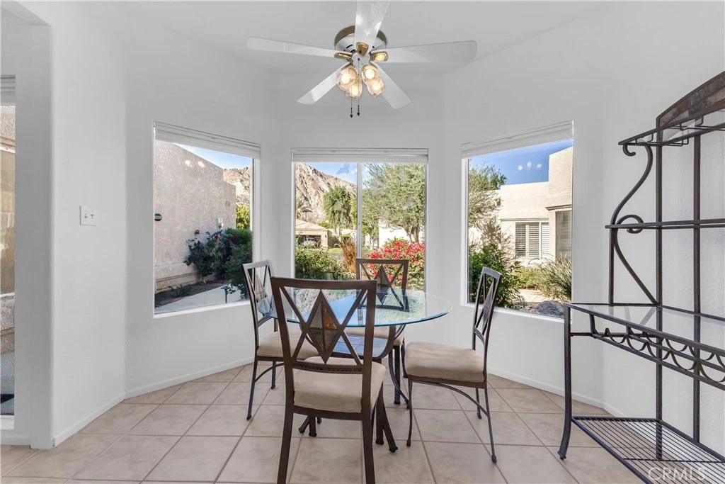 Welcome to Laguna de La Paz, a favorite gated community in La Quinta known for its lake, lush landscaping, and easygoing desert vibe. This 2-bedroom, 2-bath condo enjoys a great location away from traffic noise and right next to several amenities. Step outside, head straight to the pool, take a lap around the lake, or walk to the tennis and pickleball courts, the fitness center, and the clubhouse. The home offers a comfortable, open layout with plenty of natural light and a living space that feels welcoming the moment you walk in. The kitchen flows nicely into the dining and living areas, keeping everything connected and easy. The primary bedroom, which has its own spacious bathroom and lots of closet space, opens to a secluded patio with a pergola. The second bedroom and bath provide flexibility for guests, working from home, or weekend visitors. With a freshly painted interior new appliances, new carpet and custom made blinds, this home is ready for you to put your touch on it. Located on the only cul-de-sac in the community and well positioned to take advantage of gentle natural light without harsh direct sun, this home is a peaceful place to unwind in a beautifully maintained community that is close to golf, shopping, dining, and everything La Quinta has to offer.