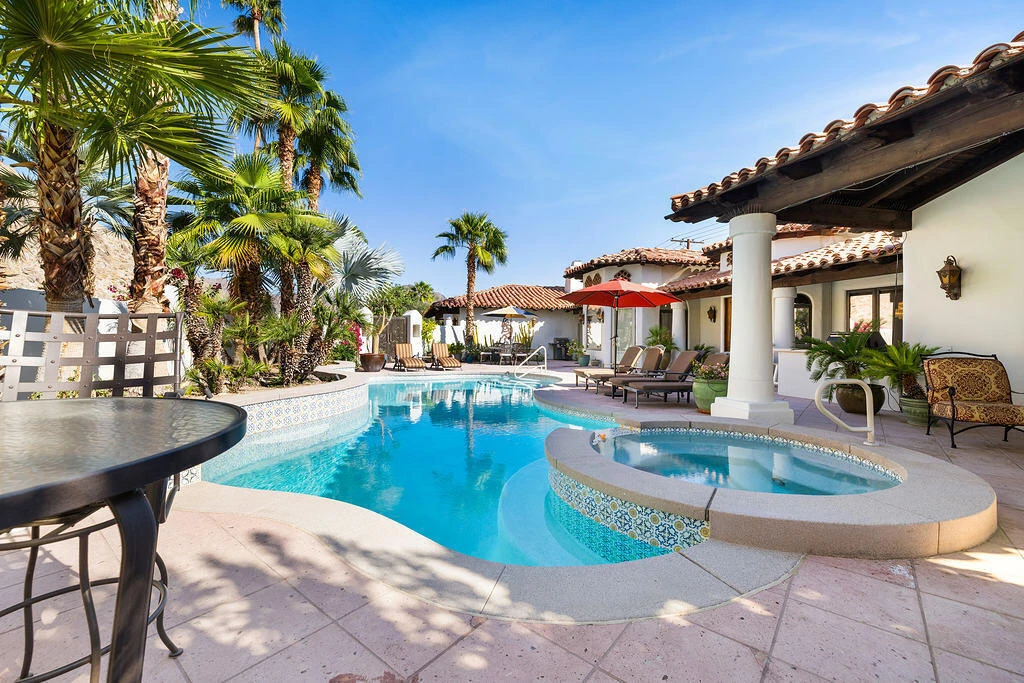 Resort-style home located in a secluded cul-de-sac with mountain views. Awesome indoor and outdoor entertainment spaces. Perfect vacation rental close to LQ Resort & Old Town. Home boasts a beautiful patio, pool, spa and outdoor bar with TV. The pool and spa were redone in 2023. The kitchen offers a gas grill and double ovens. All bathrooms were recently remodeled. Retire to any bedroom and find a king bed and TV. Home has gigabyte Wi-Fi, YouTube streaming and a Tesla universal charger.