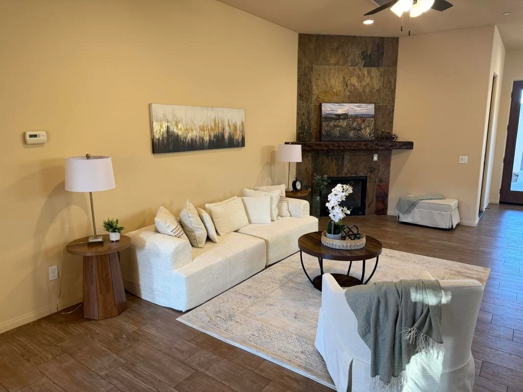 10 years old stunning Santa Fe house in La Quinta Cove, Facing the La Quinta park and walking distance to the old town. Home has a stylish front courtyard with amazing Mountain Views. This home has wood like porcelain tile floor and quality Berber Carpet in all the bedrooms. Gourmet open style kitchen with island breakfast area, knotty pine cabinets. Granite countertop and Stainless Appliances. This open floor plan layout has great lighting and ceiling fans. Home features Living room with a stone Fireplace and indoor Laundry Closet. Great Location with this Quality house, easy to show. Call Listing Agent Linda 760-4856889