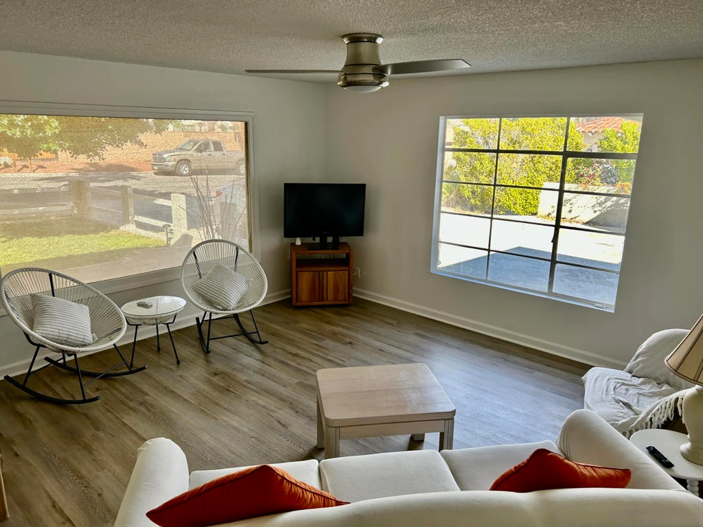 This charming home is nestled in a quiet neighborhood in La Quinta Cove. Extremely clean and ready for you to move in.The home has 2 bedrooms and 1 bath, and is freshly painted inside and out. New ceiling fans, new kitchen counters, new refrigerator, and new carpet in bedrooms. Tile floor in bathroom, beautiful laminate floors in the kitchen and living room. Laundry hook-ups. Very large gated back and side yards. Includes gardener 2 x per month. No smoking of any kind. No pets (no exceptions). $2195.The renter is responsible for utilities and water. No pets. No exceptions. No smoking.