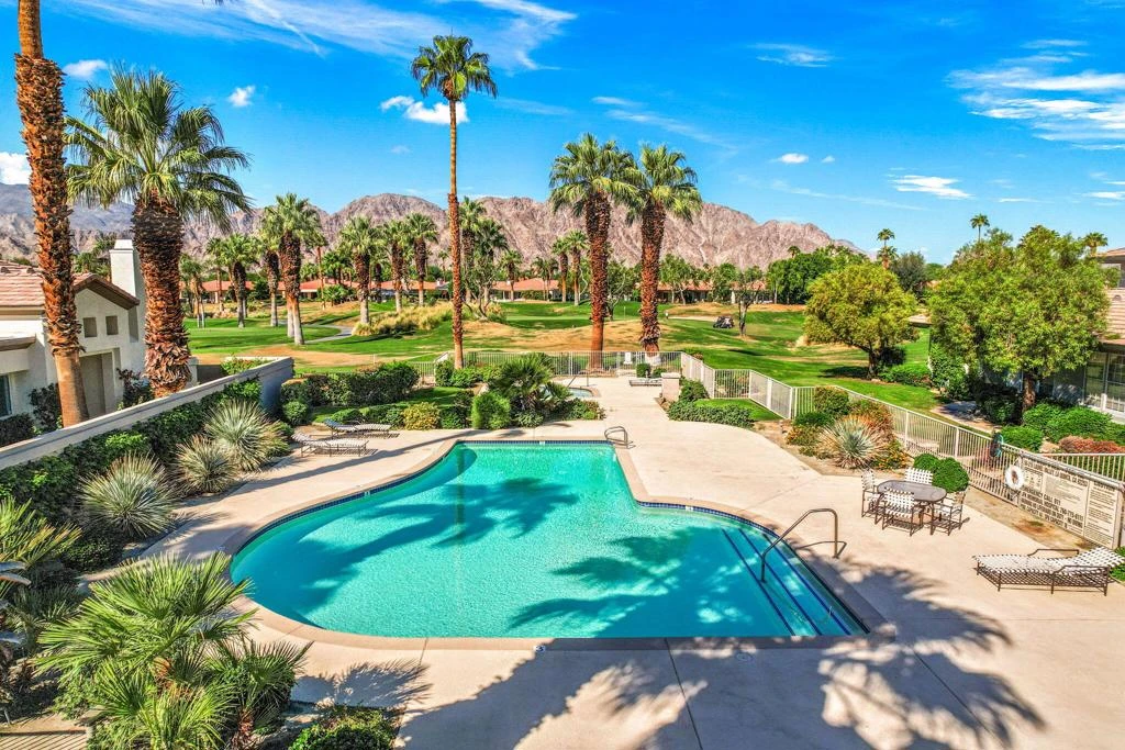 Beautiful West and extended South breathtaking views from your main patio across the lake and fairway of the par-3 island green located on the 8th hole of the Nicklaus Tournament course at PGA West. Refreshed with all new interior paint, carpet in select rooms cozy new furnishings, motorized cool shade blinds, top of the line linens a fully stocked kitchen, TV's in each bedroom, new Samsung washer & dryer. This end unit condo boasts 1828 SF with 3 bedrooms and 2 full baths, indoor & outdoor dining, separate laundry and next to a community pool and spa! A quaint private courtyard off the primary bedroom, 2nd patio with walls of glass of the kitchen and living room plus greenbelt in between offering great space & privacy. Offered for seasonal rental, rates established upon time of year/month please enquire. Reserved from Jan thru March 2026.