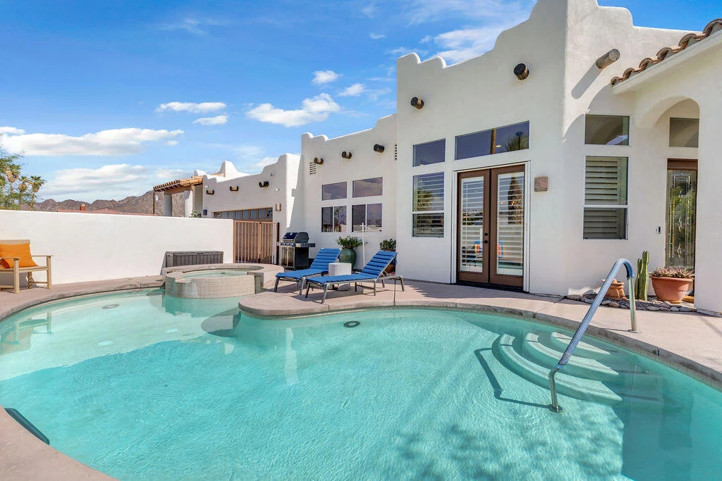 Spanish Style Retreat in La Quinta Cove Seasonal or Long Term RentalDiscover this charming 1 Bedroom Suite with an additional office area, wet bar, and a spacious open concept great room that blends comfort with a designer vacation vibe. The large kitchen features a Sub Zero refrigerator and top of the line appliances, perfect for entertaining. The master suite includes a private gym area and cozy fireplace. A washer and dryer add everyday convenience, and the garage offers secure parking and storage. Enjoy breathtaking mountain views from the front yard, featuring a sparkling pool and spa. This home offers all the conveniences of home with a vacation vibe that will make you never want to leave. Located in the scenic La Quinta Cove, close to hiking trails, Old Town La Quinta dining, shopping, and seasonal events. Available, May-Sept $5200, Oct-Dec $5500, Jan- April $6000. Long Term Lease is negotiable. Plus Utility Charge.