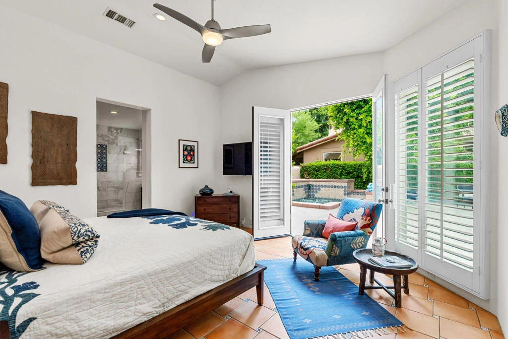 Located within the prestigious gated community of Rancho La Quinta Country Club this beautifully remodeled 3 bedroom 2 bath home in the ventana's enclave blends classic charm with modern desert living. The home features original Saltillo tile floors with authentic Mexican accents creating a warm and inviting atmosphere. The open concept living area flows seamlessly to the outdoors with large doors that open to a private enclosed courtyard featuring a spool( spa/pool ) perfect for relaxing or entertaining under the desert sky. The interior is tastefully decorated and thoughtfully designed to capture the essence of indoor outdoor living. Available 20206/2027 Season