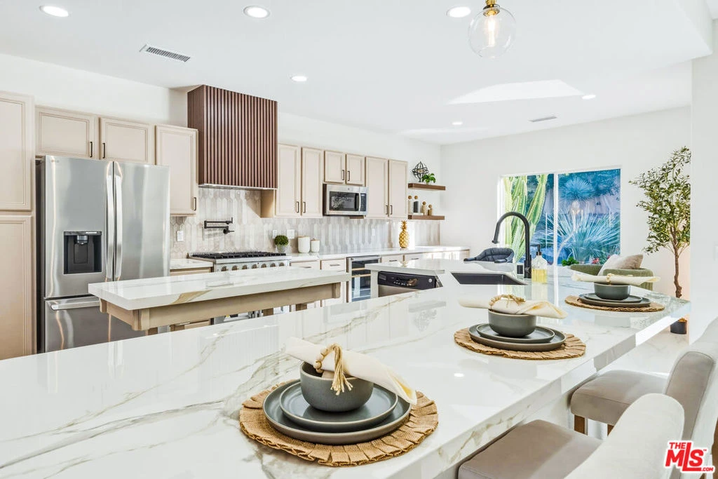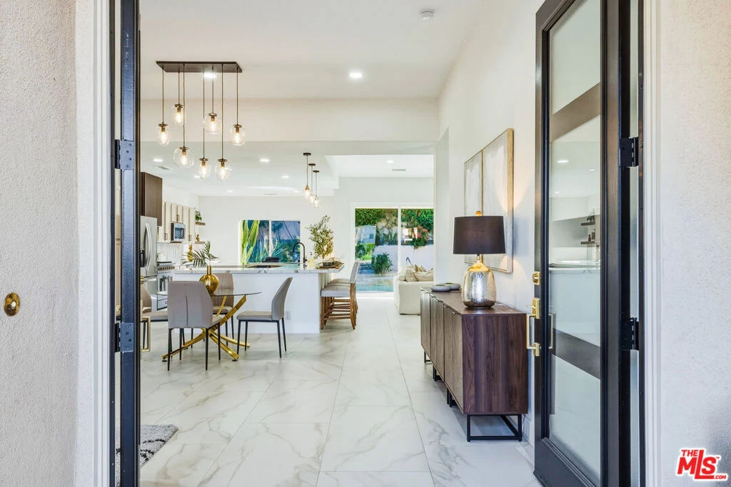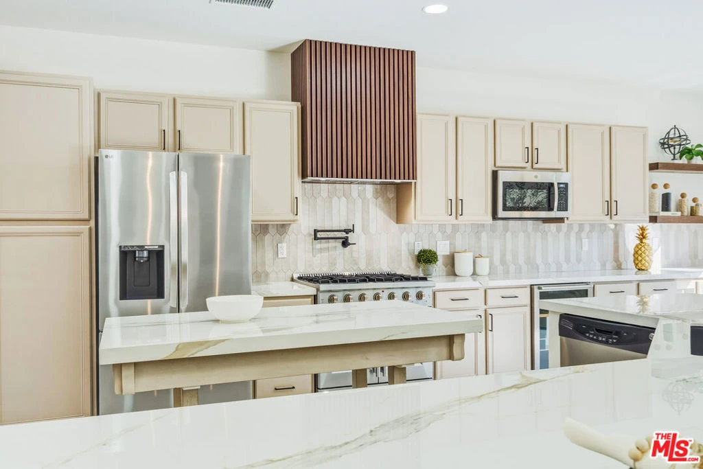 Discover a rare and compelling offering in the popular 24-hour guard-gated community of Lake La Quinta. This extensively reimagined 4-bedroom, 3 full-bath residence delivers a level of design, finish, and privacy seldom found at this price point. Positioned between the community's lower and upper price tiers, this home offers elevated architectural quality without reaching the highest price echelon, a strategic opportunity in one of La Quinta's most desirable lake enclaves. Completely revitalized under the oversight of a meticulous, experienced real estate investor, all improvements were completed with permits and City of La Quinta supervision. The interior was opened and redesigned for light and flow, finished with large-format 24 x 48 porcelain tile, and enhanced with new doors, appliances, hardware, lighting, and refined detailing throughout. A sculptural electric fireplace wrapped in floor-to-ceiling acoustic wood paneling anchors the living space, complemented by a 75-inch display on a 180-degree mount and a custom 14-foot sliding glass wall that seamlessly connects indoors to the resort-style exterior. The living room's one-of-a-kind Asian-inspired wooden wet bar and expansive open-concept layout create a true centerpiece for entertaining. The expanded chef's kitchen is both architectural and functional, featuring a generous breakfast bar, porcelain countertops, custom cabinetry, roll-out storage, wine cubbies, a beverage cooler, a statement island, a professional 36-inch gas range with pot filler, matte black fixtures, and curated lighting. All bathrooms are fully remodeled with curbless showers, spa-inspired finishes, and updated design, including a reconfigured primary suite with a private wet room, soaking tub, rain shower, and ADA-conscious layout. A former office has been converted into a true fourth bedroom. Outdoors, the revitalized pool and spa with a flowing water feature create a private retreat, complemented by refreshed hardscape, upgraded landscaping, and a custom built-in gas grill with granite counter and storage designed for effortless entertaining. Lake La Quinta offers a 25-acre private lake with electric boating, kayaking, fishing, tennis courts, pool, park space, boat docks, and a shared boat club, ideally located on Adams Street between Highway 111 and Avenue 48. To fully appreciate the design, quality, and scope of this residence, experience it in person or review it alongside the extensive improvement list. We can't wait to impress you!