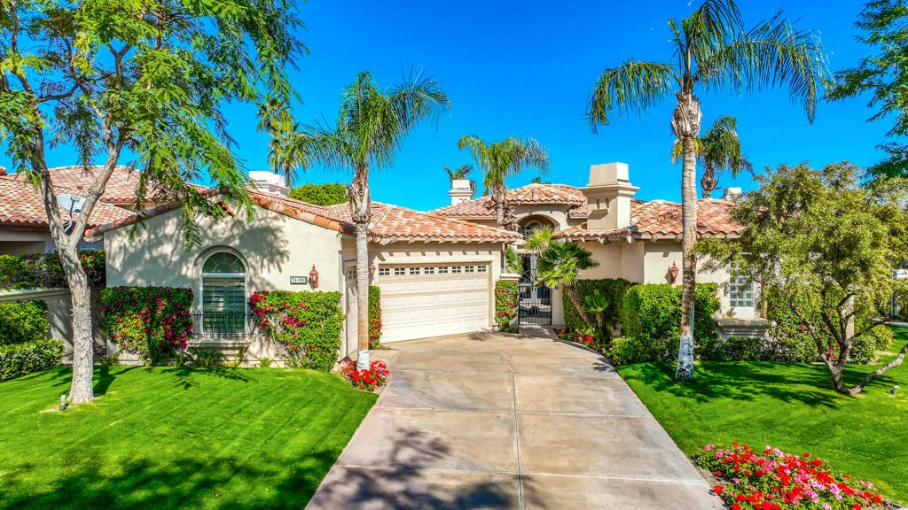 Beautiful 4BD/5BA home with over 3,500 sq. ft. overlooking the 18th fairway of a Robert Trent Jones designed course.This Spacious residence features flagstone flooring, high ceilings, abundant natural light, formal dining, full bar, spearate living and family rooms, and large picture windows with golf course and mountain views.The detached 1BD/1BA casita includes a fireplace and kitchenette-perfect for guests.Resort style backyard with a pool spa and covered entertaing spaces offering privacy and expansive views.A rare opportunity in one of La Quinta's most desirable communities.