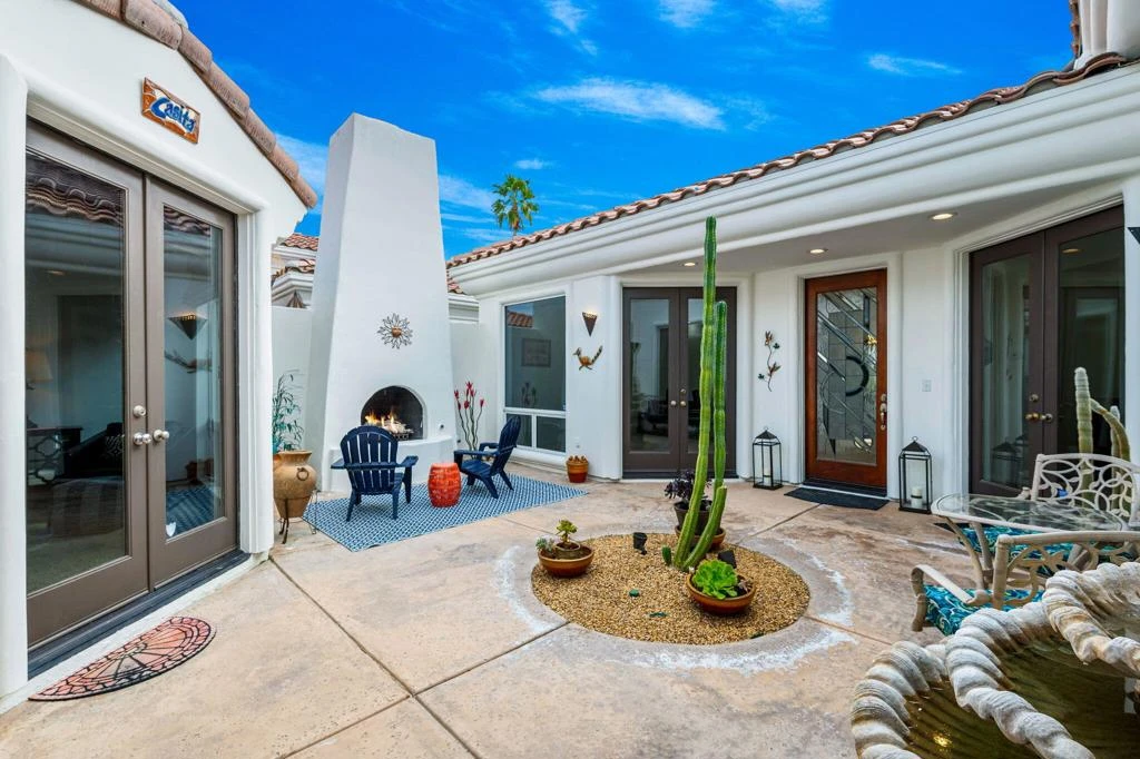This a fabulous south-facing home at The Citrus Club with amazing views with a pool and a detached casita. As you enter through the front gate, the charming center courtyard invites you to relax near the outdoor fireplace. The inside has a spacious great room with a sunken built-in bar and views from every window. Sip a cocktail by the pool as you gaze out to the panoramic views of the Santa Rosa Mountains. Set on an incredible location between the 7th and 8th holes, your family will love vacationing in one The Citrus' most sought-after floor-plans. Recent upgrades include new flooring and carpets throughout, as well as epoxy garage floors. The fourth bedroom has a brand new sofa sleeper and doubles as an office for those that have to bring work with them. Don't miss out - this home will get booked quick!!