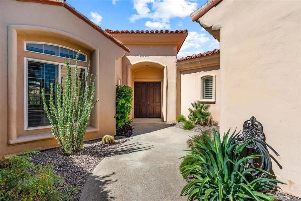 Close your eyes...and imagine the view of your dreams! Mountains, for sure, and a golf course stretching in front of you in all directions...perhaps a lake with a fountain, and lush trees? Now open your eyes and enjoy the visual feast that awaits you from this prime Citrus location! Overlooking the 12th and 13th fairways of the private Citrus course, this magnificent view comes complete with a 4-bedroom open-plan home. You will appreciate the open living/dining area, a separate family room and a gourmet island kitchen. Walls of floor-to-ceiling windows highlight the unique location and amazing light. The gas cooktop, Sub-Zero refrigerator, granite countertops and maple cabinetry will bring joy to the chef in your family! The sought-after Cozumel 4 model is rarely available, and features a large wet bar which sets the tone for easy entertaining. All bedrooms are separated for maximum privacy, and each includes a private en suite bath. The fourth bedroom is a detached casita, a serene retreat whether used as a guest room or an office. The large, south-facing patio is the ideal spot to enjoy watching golfers, soaking up rays, or dining al fresco beneath the electric awnings. The pool, in the western side yard, offers privacy and shade, and features a safety gate. Memberships are available at the Citrus Club, to share dinners, parties, golf, racquet sports, friendships, and making desert memories! Are you ready to live your dream?