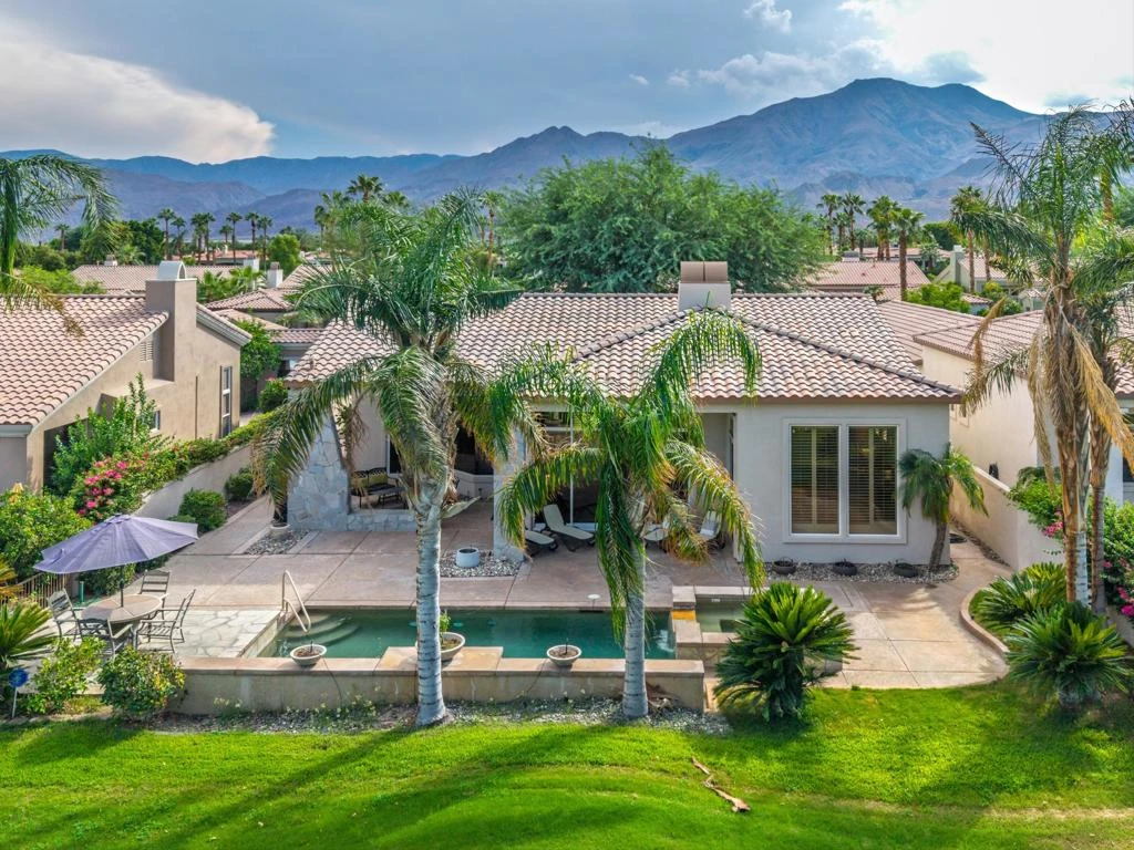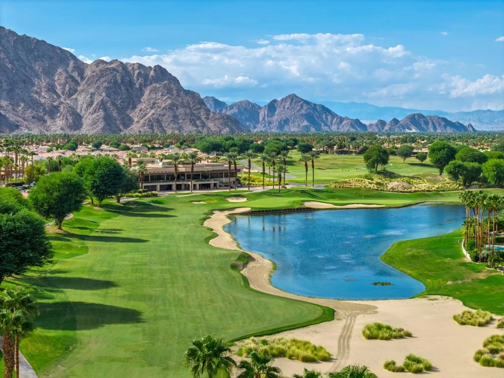 Welcome to the world-famous Jack Nicklaus Tournament Course at PGA West, where this impressive 4 bedroom, 4 bathroom, 3300+ sq ft home sits just off the 18th tee box with amazing views looking down the fairway at the Santa Rosa Mountains to the west. Designed for both comfort and entertaining, the home showcases a spectacular backyard oasis with multiple seating areas, a custom tile-accented outdoor fireplace, and ample space to host friends and family.Inside, the open-concept layout is anchored by a gourmet kitchen featuring granite counters, a large center island, high-end appliances and dual patio doors that open to a front courtyard. The main living area flows seamlessly into the dining room and spacious living room with floor-to-ceiling windows and a built-in fireplace, all enjoying beautiful backyard views. A sunken bar completes the perfect entertainer's space. The primary suite is its own retreat, offering a private sitting area, spa-like bathroom with full tile walk in shower, sunken soaking tub, dual vanity and walk in closet.For guests, the property features exceptional privacy with two detached suites. One offers a large en suite guest casita while the second includes a unique two -bedroom setup ideal for extended family or visitors. Just a short stroll away, the public clubhouse at PGA West offers and upper level patio overlooking the 9th and 18th greens of the Nicklaus Course, a lively restaurant and bar, and the perfect spot to catch your favorite game. Beyond PGA West, enjoy nearby world-class polo grounds, the iconic Coachella and Stagecoach music festivals, and the charm of Old Town La Quinta with its boutique shopping, dining and weekly farmer's market.This home combines the prestige of a PGA West address with the ultimate in desert lifestyle living- an opportunity not to be missed. Now available for September and October 2025! Please note that high-season rates apply outside of these dates.