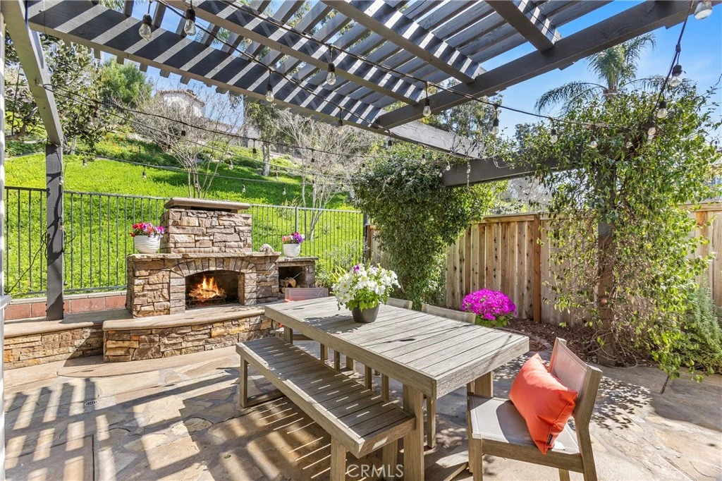 Welcome to this beautifully updated and thoughtfully upgraded residence, 45 Fieldhouse in the highly sought-after community of Potters Bend in the heart of Ladera Ranch. Set on a rare lot with a private backyard and no neighbors behind, this exceptional 3-bedroom, 2.5-bath home offers the perfect blend of comfort, sophistication, and indoor-outdoor California living. At the heart of the home is a stunning, updated kitchen featuring crisp white quartz countertops, a designer tile backsplash, an oversized basin sink, and premium appliances including a convection double oven and microwave—perfectly suited for both everyday living and elevated entertaining. The open-concept main level is warm and inviting, showcasing a spacious family room with custom built-ins and a cozy fireplace, flowing seamlessly into the charming eat-in dining area. Sliding glass doors open to a beautifully designed backyard retreat with elegant flagstone hardscaping, a built-in outdoor fireplace, fresh landscaping, and an ideal setting for al fresco dining and year-round enjoyment. Upstairs, three generously sized bedrooms offer a serene escape. The primary suite is highlighted by a spa-inspired bath and a sleek seamless glass shower enclosure. This home is truly turnkey, with extensive upgrades including recent interior and exterior paint, PEX repiping, a newer air conditioning system and solar—providing both style and peace of mind. Ideally situated within close distance to award-winning Ladera Ranch schools, the Flintridge Clubhouse and pool, public library, dog park, and the iconic Founders Park—home to the community’s premier events and recreation—this is an exceptional opportunity to own a beautifully updated home in one of Orange County’s most desirable neighborhoods.