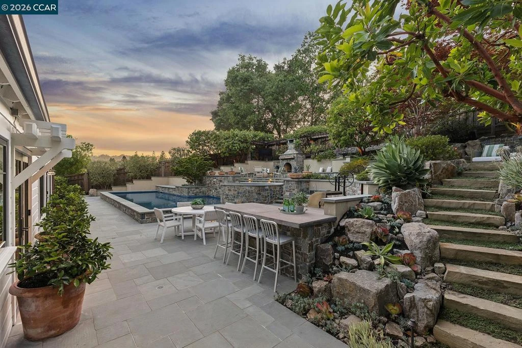 Main House: 4 Bed | 2.5 Bath | 3,271± Sq. Ft. | .55± Acre Lot Guest House: 1 Bed | 1 Bath | 730± Sq. Ft. 1,500-Bottle Wine Cellar | Subterranean Car Lift | 788± Sq. Ft. Garage Tucked into a treasured setting in Happy Valley, 1089 Rahara Drive offers a rare sense of calm that’s felt the moment you arrive. Set above the rhythm of everyday life, the home carries that feeling throughout, with natural light, generous volume, and a floor plan that feels both intuitive and welcoming. This is a home designed to be lived in with ease, where thoughtful details and warm, livable spaces come together in a way that feels effortless and lasting. THE MAIN HOUSE At 3,271± square feet, the main house lives larger than expected. Tall ceilings lift every room, light pours in from multiple directions, and the floor plan has an easy logic to it, the kind that makes daily life feel effortless rather than managed. There are nooks that become favorite spots: a kitchen bay window, a mudroom off the kitchen that quietly absorbs the chaos of coming and going, a bar with its own counter and sink that earns its place every single evening. The kitchen is the heart of it. Two skylights overhead and windows that frame the outside make it one of the brightest, most welcoming rooms in the house. Calacatta Bettogli marble runs across the counters, and the appliances, Wolf, Sub-Zero, Miele, are the kind that disappear into the background and simply perform. The walk-in pantry keeps everything in its place. The primary suite is quiet and considered: limestone hexagon floors, a custom walnut vanity, brass fixtures, a large shower with a built-in seat, and a walk-in closet that is genuinely outfitted rather than merely large. Down the hall, paneled ceilings and wainscoting give the home a sense of architecture in the spaces between rooms, the kind of detail that you notice and then can never un-notice. THE GUEST HOUSE The 730± square foot guest house has its own gravitational pull. A private balcony off the bedroom, a marble and limestone bath, a living space with a built-in lounge. Guests settle in and stop counting the days. Ideal for extended stays or a home office, it’s a space that adapts easily depending on what’s needed. THE WINE CELLAR A temperature-controlled, 1,500-bottle wine cellar designed for proper storage. For collectors, it’s essential. For others, it’s a standout feature that adds depth and character to the home.