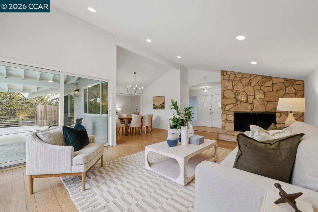 3927 Woodside Ct, is the definition of indoor-outdoor living! Located at the top of Woodside Ct on Lafayette's west end, this private & serene home, with panoramic Mt. Diablo views features 4 bedrooms, w/an expanded primary suite, 2 updated bathrooms, a family room off the kitchen, a bonus/laundry/yoga/office room off the garage, refinished HW floors throughout, fully updated LED lighting and electrical, NEST, new fixtures, fresh interior paint, new entry flooring, a new garage door, new landscaping and a 5 year old roof. Step through the inviting double door entry, and be immediately captured by soaring ceilings in the living room, including a large wood-burning fireplace, a dedicated dining area, oversized windows and a sliding door opening to a sparkling pool and a view that goes forever. The one acre plus property features oak studded hillsides, redwoods, relaxation and peace. Spend time on the Brazilian IPE sustainable HW deck that wraps around the back side of the pool. Relax and watch for gliding hawks flying above as the sun sets. Fresh landscaping allows for lawn play. A fantastic commute location places you close to two downtowns, 2 BARTS, award-winning schools, Oakwood Athletic Club and direct access to the the Lafayette Reservoir Rim Trail right out the door. Views: Ridge