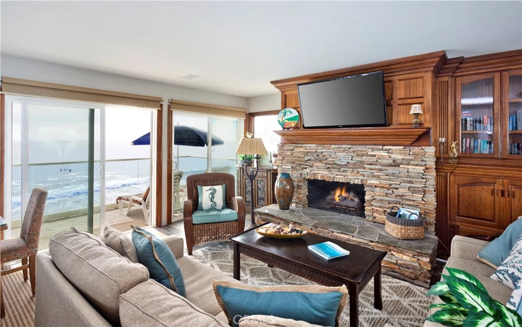 Beautiful ocean front monthly rental available starting June 1, 2026. This lovely and spacious three-bedroom, two-bath unit is located beach front on the famous Brooks Beach in Laguna. Relax on the expansive balcony just steps from the beach, offering stunning 180-degree panoramic ocean views. Watch surfers at Brooks Street, spot dolphins, and take in breathtaking sunsets. The home is tastefully decorated with a calming, beach-inspired style. It features smart TVs in the living room and all bedrooms, along with high-speed wireless internet. The prime location is within walking or trolley distance to numerous restaurants, art galleries, and Main Beach. We’re situated on Brooks Street Beach (a popular surfing spot), with Cress Beach (a great family beach) just to the left. The property boasts beautiful ocean views, sliding windows that lead to a large balcony over the ocean, and a cozy living room with a fireplace and large flat-screen TV. The master bedroom has a Cal King bed, a spacious lofted closet, and a large TV. The second bedroom also features a Cal King, while the third bedroom offers a Queen-sized bed. Mobile A/C units in the bedrooms during the summer months. The space is bright and airy, with plenty of windows and mirrors to maximize the ocean views. Private stairs lead down to the beach. One car parking in the garage, with shared EV charger available, and all utilities are included. Available for monthly rentals. Current availability begins June 1, 2026. Available June 1- August 8, October 1 - December 22. Summer rates: June ($20,000), July/August ($25,000).