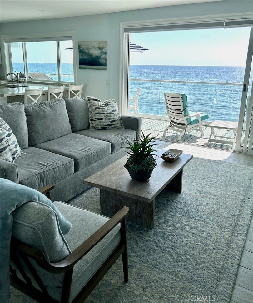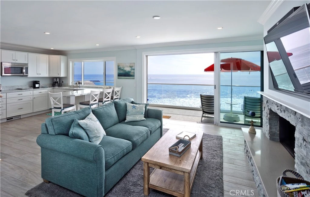 Beautiful furnished ocean front monthly or long term rental. Available starting May 3, 2026. Spacious and bright one bedroom, one bath plus office nook lower unit on Brooks Beach in Laguna. Enjoy the large balcony right over the beach with 180 degree panoramic ocean view. Watch the surfers, dolphins, and amazing sunsets. Decorated in a soothing and relaxing beach inspired style. Living room has lovely fireplace and large flat screen. Master bedroom has walk in closet and smart TV. Large master bath with dual vanities. Hi Speed wireless Internet access. Great location with walking and trolley distance to tons of restaurants, art galleries, Main Beach...we are on the Brooks Street Beach (famous Surfing Beach) with Cress Beach (great family beach) to our left. Nicely furnished with gorgeous ocean views. Bright and airy with lots of windows and mirrors for maximum ocean views. Private stairs down to the beach. One car garage parking and utilities plus high speed internet included. Access to shared EV charger. Rent by the month as a short term rental or will consider long term lease. Available starting May 3, 2026. Summer rates apply June through August for short term rentals.