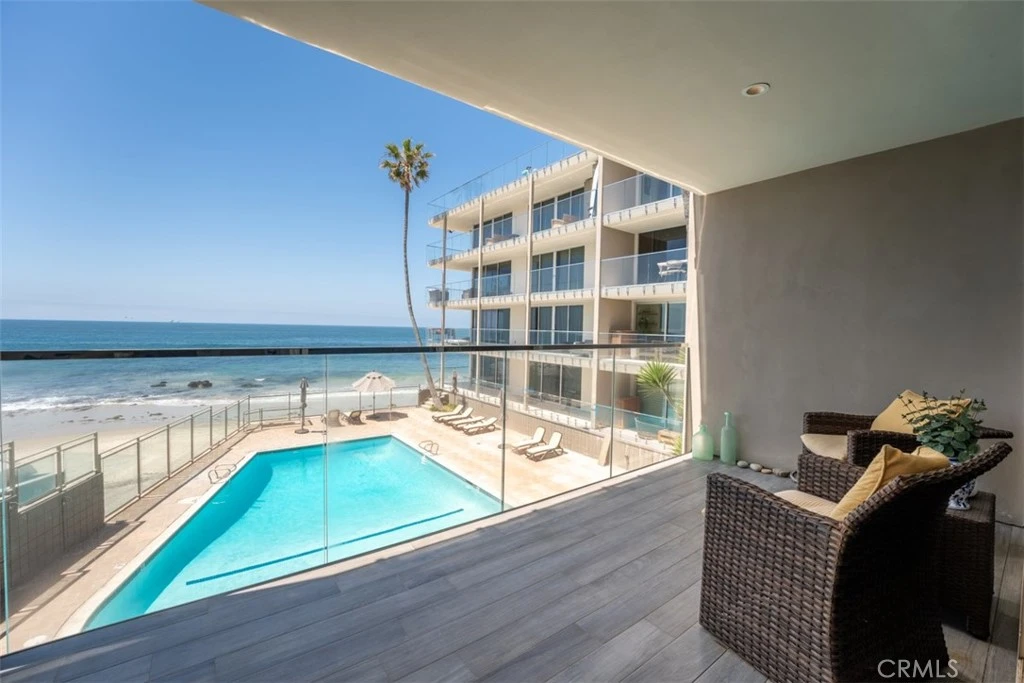 OCEANFRONT! Available May 2026 and on. Fully furnished Turnkey, just bring your suitcase. Recently remodeled and upgraded "Toes in the Sand" Oceanfront End-Unit Gem is an exceptionally rare opportunity to lease within Laguna Sands with no PCH noise. HEAR THE OCEAN AND FEEL THE OCEAN SPRAYS ACROSS THE 35 FT PRIVATE OCEAN VIEW DECK! Offering incredible white water and Catalina Island views within only a few steps to the front door from the private gated underground garage. Floor to ceiling sliding glass doors boast pristine ocean views throughout the main living areas and expansive balcony deck. Fresh contemporary finishes radiate Laguna Beach hideaway throughout this extremely immaculate and well maintained condominium including: all new custom kitchen appliances with Carrera marble countertops, ceramic tile on the diagonal throughout, 10' ceilings, recessed lighting throughout, and private front loading washer and dryer. Enjoy direct access to the beach or the private heated community pool and two rooftop decks. Truly a wonderful opportunity, right in the heart of Laguna Beach, neighboring the Surf and Sand Resort, top restaurants, shops, galleries, and only within a couple minutes of downtown.