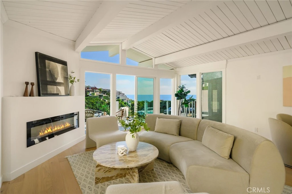 Experience the ultimate expression of modern coastal living at 1784 Del Mar Avenue, a fully reimagined 3 bedroom, 2.5 bath Laguna Beach residence that artfully combines architectural refinement, functionality, and breathtaking Pacific Ocean, Catalina Island, canyon, and city light views from the main living area and balcony. Thoughtfully redesigned with a new floor plan and approved architectural plans, this hillside retreat harmonizes contemporary design with the relaxed spirit of coastal California. An open concept layout connects expansive living and dining spaces to a glass-railed balcony, creating seamless indoor-outdoor flow and natural light throughout. The chef’s kitchen showcases European-style cabinetry, quartz countertops, Forno commercial-grade appliances, and custom finishes curated by Nicole Fay Interior Design Studio. The primary suite, privately situated on the upper level, offers abundant light, tranquil hillside views, and a spa-inspired en-suite bath. Two additional bedrooms occupy the lower level, including one that opens directly to the serene backyard, ideal for guests, a home office, or multigenerational living. From the backyard, step directly onto the Aswut Trail, connecting to the Meadows Trail and the Aliso & Wood Canyons Wilderness Park with over 30 miles of hiking and biking trails. Throughout the home, premium details abound: wide-plank white-oak flooring, a digital fireplace, upgraded plumbing and electrical systems, sleek modern vanities, and a digital climate-control A/C system. Exterior upgrades include a new roof, waterproofed balconies with glass railings, replaced skylight glass, privacy gates and fences, and lush professional landscaping. The property also includes approved plans for a future two-car garage, offering flexibility and long-term value. Perfectly situated minutes from Moulton Meadows Park, Laguna’s beaches, The Montage Resort, fine dining, art galleries, and the heart of Laguna Village, this turnkey home captures the essence of luxury coastal living modern, elevated, and unforgettable