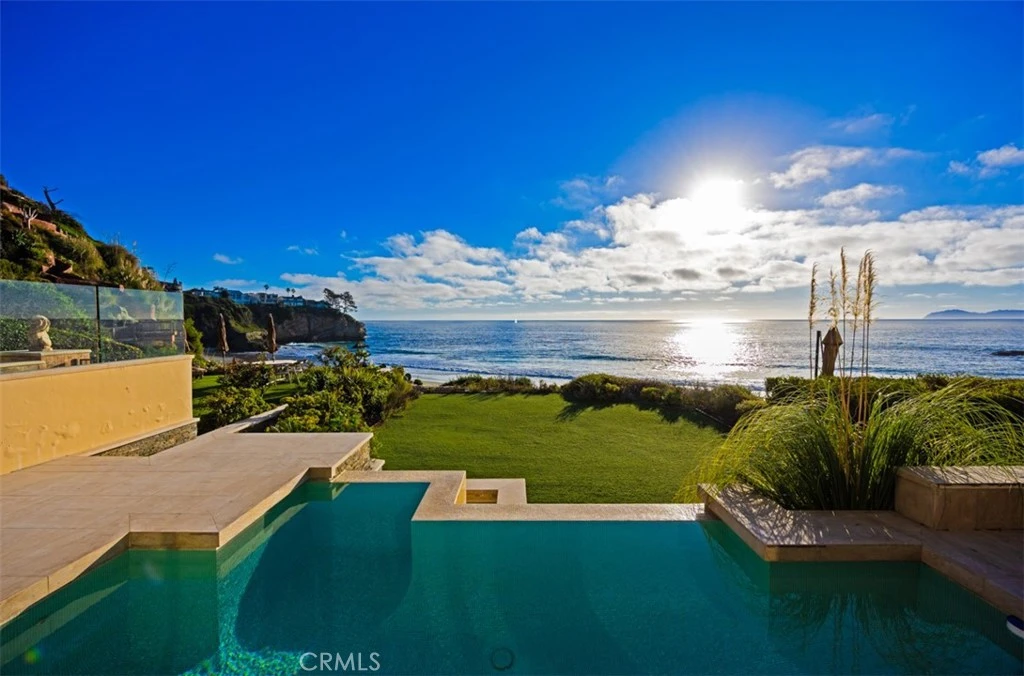 A truly unparalleled offering, this rare oceanfront estate in the coveted, guard-gated enclave of Three Arch Bay presents an extraordinary chance to shape one of Laguna Beach’s most significant coastal properties. Poised above the community’s iconic private cove, the residence commands sweeping, unobstructed views of the Pacific and enjoys direct access to the sand—an amenity few homes along the coast can claim. Set on a sprawling, flat oceanfront parcel with a pool, spa, and meticulously landscaped grounds, the property offers a spectacular setting where land, sea, and architecture converge. The existing structure—stripped to the studs and ready for transformation—provides an exceptional framework for the next owner’s vision. Towering ceilings, vast expanses of glass, floating staircases, and a commercial-grade elevator lay the groundwork for a world-class contemporary retreat that lives in rhythm with the shoreline just beyond. Every level opens to expansive terraces and floor-to-ceiling sliding walls of glass, dissolving the boundary between indoors and out while capturing the drama of the coastline. The lower level spills effortlessly onto the pool terrace and oceanfront lawn, creating a breathtaking backdrop for everyday living and unforgettable gatherings. Thoughtfully designed in collaboration with FRANK and CJ Light, the home is offered with fully approved plans and permits—an invaluable advantage that allows construction to commence immediately, saving years of time and complexity. The plans also provide the ability to expand, including options for two additional bedrooms and a 700-square-foot ADU, further enhancing the estate’s scale, functionality, and value. Residents of Three Arch Bay enjoy exclusive access to an array of private community amenities, including 24/7 guarded entry, a residents-only beach, clubhouse, tennis and basketball courts, playground, and beautifully maintained parks. Moments from world-renowned beaches, celebrated restaurants, and premier schools, this extraordinary estate represents a once-in-a-generation opportunity to craft a legacy home along one of Southern California’s most treasured stretches of coastline.