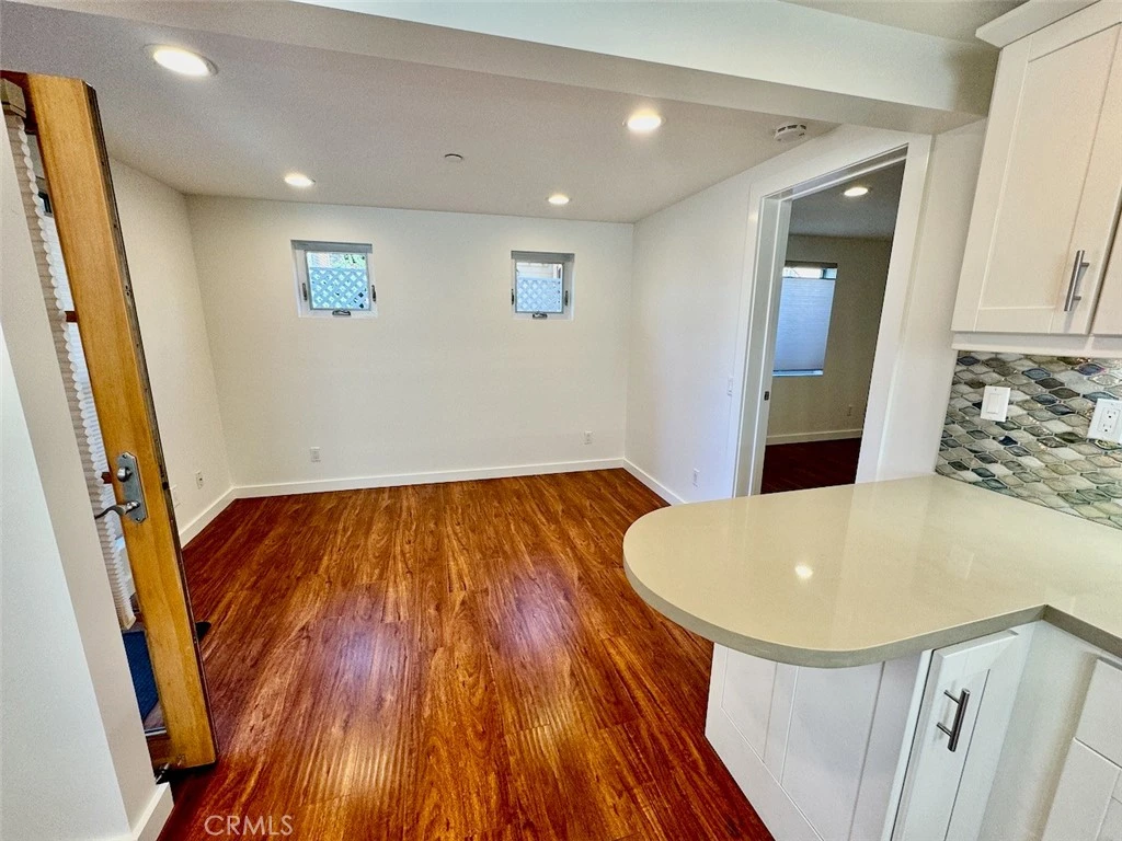 Recently remodeled, this is the lower floor of a duplex in the Woods Cove neighborhood- 1 block to Pearl Street beach. Amazing details, large deck in back where the "front" door is. Hardwood floors, quartz stone countertops, mosaic tile backsplash, stainless steel appliances, designer lighting. A bar counter adds seating to this high end unique space. Bathroom has a farm style porcelain sink, mosaic tile details. Laundry is located in the community laundry room. Parking for a single car in front driveway . A communal backyard space is available. Water, trash, and gardener are included in rent. Tenant pays $50.00 per month for gas and electricity.