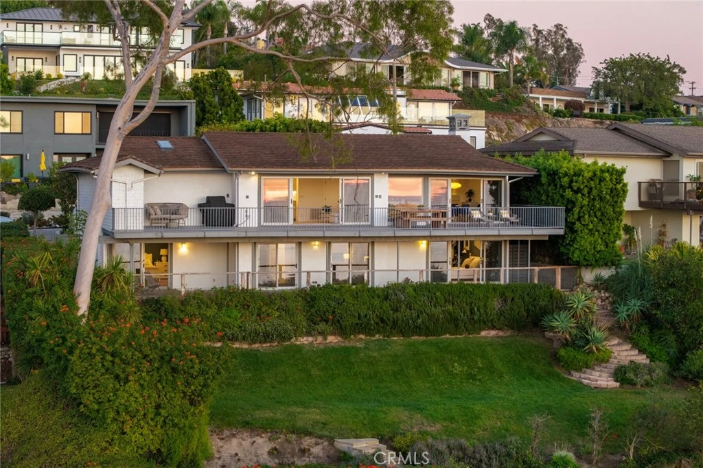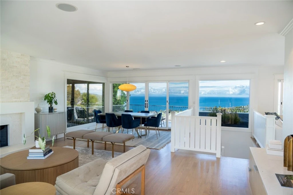 Positioned on one of the most sought-after view corridors in Laguna Beach, 2855 Zell Drive captures a front-row perspective that is nothing short of extraordinary. From its commanding elevation, the residence showcases uninterrupted, cinematic vistas spanning Catalina Island, the full sweep of the Pacific Ocean, sparkling evening city lights, Main Beach’s iconic shoreline, and the coastline extending to Palos Verdes. The kind of view typically reserved for postcards is your everyday backdrop and experienced from nearly every room. A recent refinement of the property introduced a sophisticated blend of modern comfort and elevated coastal style. The kitchen and family spaces were reimagined with new countertops, beautifully refreshed cabinetry, brass details, designer lighting, and upgraded fixtures, creating a polished environment for both daily living and hosting. A statement limestone fireplace, finished with custom millwork and a slab surround anchors the main living area with understated luxury. The home’s enhancements extend well beyond aesthetics. Bathrooms were thoughtfully redesigned with new surfaces, hardware, lighting, and tailored details that evoke boutique-hotel appeal. Refinished hardwood flooring, new designer paint across the interior and exterior, upgraded LED lighting throughout, and a curated selection of new fixtures contribute to a cohesive and elevated atmosphere. Modern conveniences such as an EV charging outlet, appliance upgrades, and enhanced exterior safety vents reflect the level of care invested in the residence. Outdoor spaces were refreshed with new hardscape, landscaping, and thoughtful additions that enhance both curb appeal and livability. Every improvement was made to complement the home’s natural focal point: the sweeping coastal panorama that transitions beautifully from vibrant daytime blues to golden sunsets and shimmering evening lights. Created for the buyer who values refined living and a world-class view, this home offers a turnkey luxury experience in one of Laguna Beach’s most desirable settings.