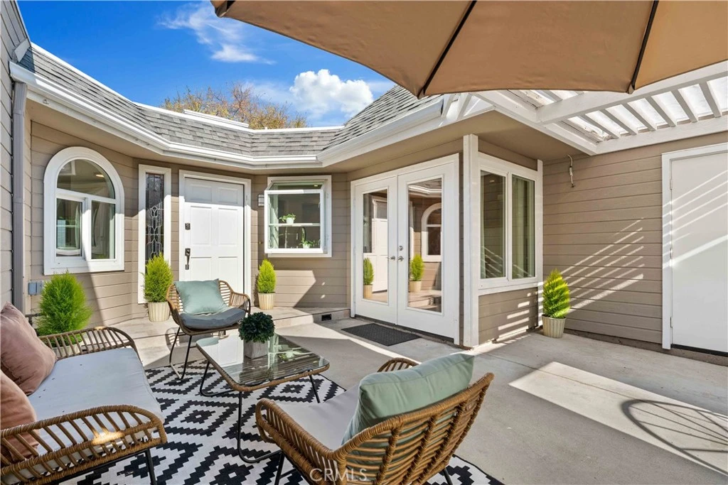 UNIQUE Laguna Hills VIEW HOME with beautiful rolling green hill-top scenery and sparkling blue water view as the inviting Pool & Spa amenities below are framed in with lush natural surroundings! PERCHED on one of the Highest-Points in the Laguna Meadows makes for a Premium-Location & Rare-Find! REMODELED with the perfect blend of function & relaxation as the dazzling sunset ambiance are enjoyed from multiple rooms and the awe-inspiring view deck! With over 1,600 Square Feet of quality living, this customized OPEN-FLOOR PLAN was the largest size & newest built phase. Three EXTRA spacious Bedrooms, 2.5 Bathrooms, 3 Outdoor Patios, an OVER-SIZED Garage and abundant parking for 2-4 Cars! Welcomed by stunning Bamboo Hardwood Floors that lead your eyes to the tree-top views creating an instant sense of peace. The tastefully remodeled kitchen provides custom cabinetry with extra storage, (Pot/Pan Organizer), 2 Lazy-Susans, Quartz Counters with natural light and open views to 2 entertaining areas! Enjoy the Primary Bedroom Suite on the main floor with cheerful views! A bonus sized Remodeled Bathroom providing a grand walk-in shower, rain shower head, dual vanity and lots of bonus space and more. Includes: Water Filtration with Reverse Osmosis! Upgraded dual zone HVAC 4-Ton Lenox Air Conditioner / Heater System with MERV 13 HEPA whole house filtration system. Natural light abounds with newer Dual-Paned Windows (Energy Efficient), Stylish glass French Doors an Extra-Large Sliding Glass patio Door plus a Kitchen Bay Window style Garden Box! On top of that, two Skylights perfectly placed, and all three bedrooms add cheer with full length mirrored closet sliding doors to accompany the generous closet space. Delicious Lemon Tree too! Beyond this amazing property, enjoy so many of the Association benefits such as Gym / Fitness center, two Resort Style Pools & Spas, Volleyball Courts, multiple Tennis Courts, BBQ area, Greenbelts, Clubhouse, Playground, etc. Heated Pool & Spa #2 are so perfectly located for easy enjoyment! Located in the heartbeat of South OC with easy access to freeways, Irvine SPECTRUM, Laguna Beach, walking distance to Laguna Canyon, Barbara's Lake and various bike & hiking trails. Nestled up against Laguna Canyon nature preserve with all the nearby conveniences South Orange County cities have to offer! Award Winning Schools, dining & premium shopping, beaches and more. Laguna Hills Lifestyle at its best!
