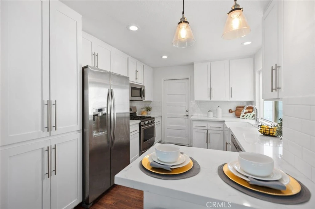 WELCOME to 23446 Caminito Salado, a beautifully remodeled end-unit home where modern style meets everyday comfort. Tucked away for privacy with greenbelt views, this residence offers the perfect balance of retreat and convenience. From the moment you walk through the door, the open floor plan draws you in with an abundance of natural light, luxury vinyl flooring, recessed lighting, and sleek modern sliding glass doors that enhance the home’s stylish flow. The heart of the home is the chef’s kitchen, thoughtfully designed with stainless steel appliances, quartz countertops, a farmhouse sink, and new cabinet doors—perfect for everything from a quiet morning coffee to preparing a dinner party with friends. Downstairs, both bedrooms are spacious and light-filled, featuring mirrored closet doors and ample storage. The bathrooms have been fully remodeled with upgraded showers and contemporary finishes, giving them a spa-like feel. This two-level floor plan, with no neighbors above or below, is designed for both privacy and functionality. One enclosed garage and an enclosed parking space. Details like shaker panel doors, an updated water heater, and an upgraded HVAC system ensure peace of mind, while the enclosed garage and attached parking provide everyday convenience. Step out onto your private view deck and take in the serene setting of trees and open greenbelt—a perfect spot to unwind, read, or entertain guests. Life at Caminito Salado also comes with the perks of resort-style living. Enjoy two sparkling pools, relaxing spas, a fully equipped gym, clubhouse, playground, and BBQ areas—all just steps from your front door. Whether you’re looking for a quiet retreat, a vibrant social atmosphere, or the perfect place to entertain, this home delivers it all. Beautifully updated, thoughtfully designed, and ideally located, 23446 Caminito Salado is ready to welcome you home.