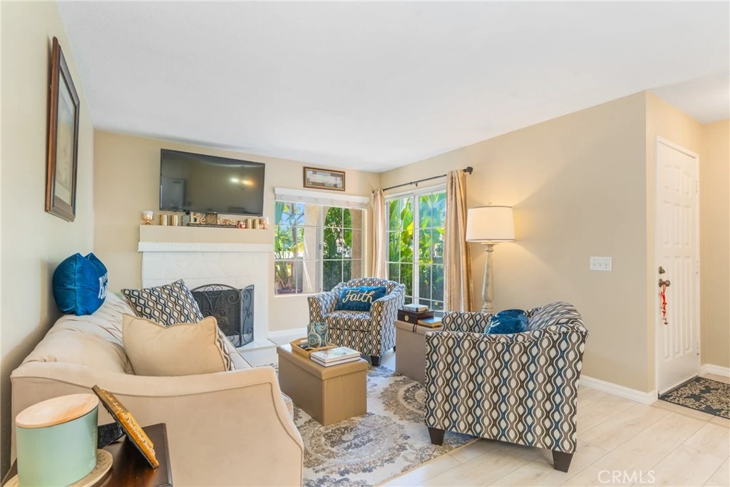 Welcome to beautiful move in ready condo in desirable Briosa association in Laguna Hills. This condo offers 2 bedrooms and two full baths. Master bedroom with walk-in closet and private bath. second bedroom is perfect for office or quest room. Kitchen is upgraded with quartz counter top, new cabinets and some new appliances. New flooring and painting throughout the house with high quality laminate. Laundry with stacked washer and dryer. Enjoy relaxing by the fire place in the cozy living room. Beautiful wrap around patio is private and perfect area for morning coffee and entertaining. One detached garage with storage. plenty parking for your quests.Resort - style Briosa community amenities:Pool, jacuzzi, children’s park, and scenic walking trails. Repiped ln 2018 for added peace of mind.Water and trash services included in HOA dues. Close to shopping centers, parks, walking , biking, hiking trails . Easy access to freeways and toll roads.