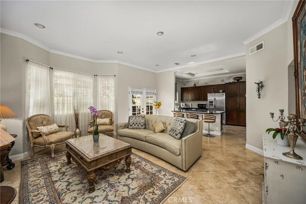 Turnkey end-unit townhome located in the desirable Crestline community of Laguna Hills. This beautifully upgraded 2-bedroom, 2.5-bath residence offers an open and light-filled floor plan with high ceilings, crown molding, travertine flooring, and tasteful finishes throughout. The spacious living and dining areas flow seamlessly into a well-appointed large kitchen featuring custom cabinetry, granite countertops, and stainless steel appliances. The home also features one of the most private and expansive patios in the community, creating an ideal indoor-outdoor setting for relaxing or entertaining. Upstairs includes two bedrooms, including a generously sized primary suite, each with upgraded bathrooms. Additional improvements include newer A/C (approximately one year old) and patio wood shades. The end-unit location provides added privacy along with dual access to parking for enhanced convenience. Residents enjoy access to HOA amenities including three pools, spas, and a clubhouse, all within a pet-friendly community surrounded by greenbelts, parks, and scenic trails. Conveniently located near Top-rated schools, shopping, Aliso Viejo Town Center, Trader Joe’s, Costco and dining. The Laguna Hills Community Center is close by, featuring a park, soccer and baseball fields, playground and skate park. Easy access to Laguna Beach and Dana Point from Alicia pkwy and major highways including 5 and 73. This is a compelling opportunity for buyers seeking a move-in-ready home with strong long-term value in a prime Orange County location. Don't miss it!