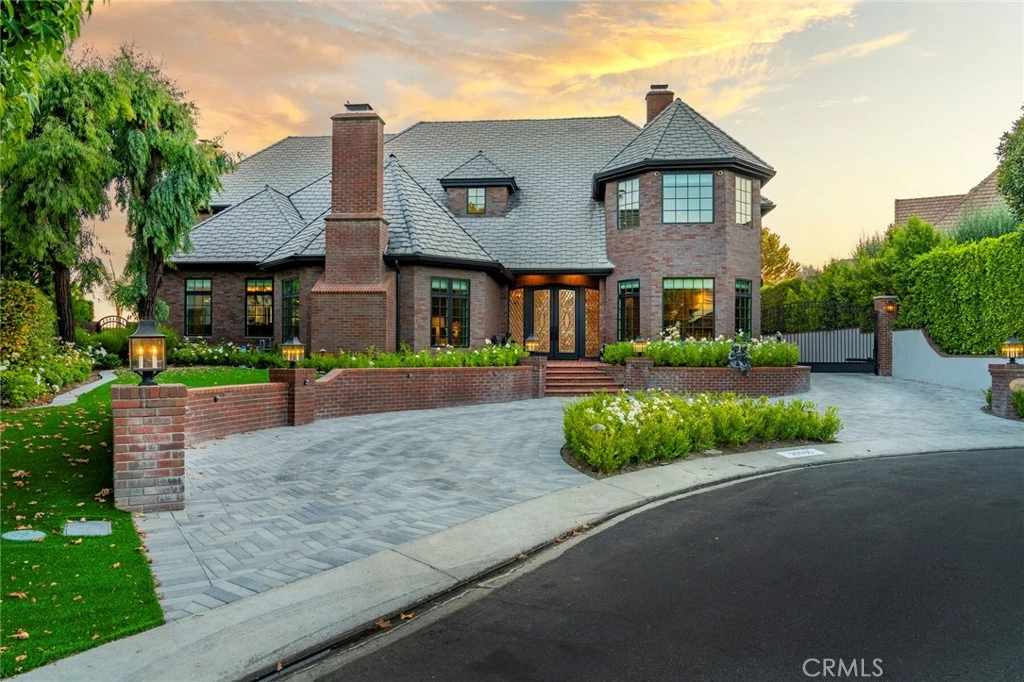 Welcome to 25965 Poker Flats, where luxury & craftsmanship meet in the prestigious Nellie Gail Ranch community. Boasting over 7400sqft, this custom 5 beds/7 baths estate was extensively renovated in 2022, with no expense spared. As you approach, the grandeur of the property is immediately apparent. A stately circular driveway leads to a gated motor court & a 3 car garage, providing ample parking and privacy. Step through the grand entry, where herringbone-patterned floors & exquisite woodwork set the tone for the opulence that awaits inside. A distinguished office boasts built-ins, a coffered ceiling, & a fireplace. Rich wood flooring guides you through the first floor, which features two half-baths & a formal dining room complete with its own fireplace. The heart of the home is the chef’s kitchen. Outfitted with marble countertops, custom cabinetry, & state-of-the-art appliances. It opens seamlessly to the inviting family room. La Cantina doors extend this space to the breathtaking backyard, creating a harmonious indoor-outdoor flow. A bar area & wine room complete this entertainer’s paradise. The main level also includes a private en-suite bedroom with exterior access. A versatile bonus room offers space for a home gym, playroom, or media room. Ascending the grand staircase, you’ll discover the primary retreat. This haven features soaring ceilings, a private sitting area, & La Cantina doors that open to a balcony with views of rolling hills and city lights. The spa-like primary bathroom boasts a soaking tub, an oversized shower, and dual walk-in closets. 3 additional upstairs bedrooms are generously sized, each with walk-in closets & en-suite bathrooms. A beautifully appointed laundry room with abundant storage & workspace completes the second level. The expansive backyard is a private oasis framed by serene hillside views with a resort-style pool & spa. A built-in barbecue, artificial turf, & ample space for a sports court or additional seating make this yard perfect for relaxation & entertaining. This home also features cutting-edge smart technology, including a Savant system & hardwired Wi-Fi access points. Other updates include new plumbing, electrical systems, water heater, & water softener. Originally built by one of the first Mouseketeers, this estate pays homage to its Disney legacy with charming details like the Mickey Mouse stained glass window in the wine room. Don’t miss the opportunity to make this extraordinary property your home.