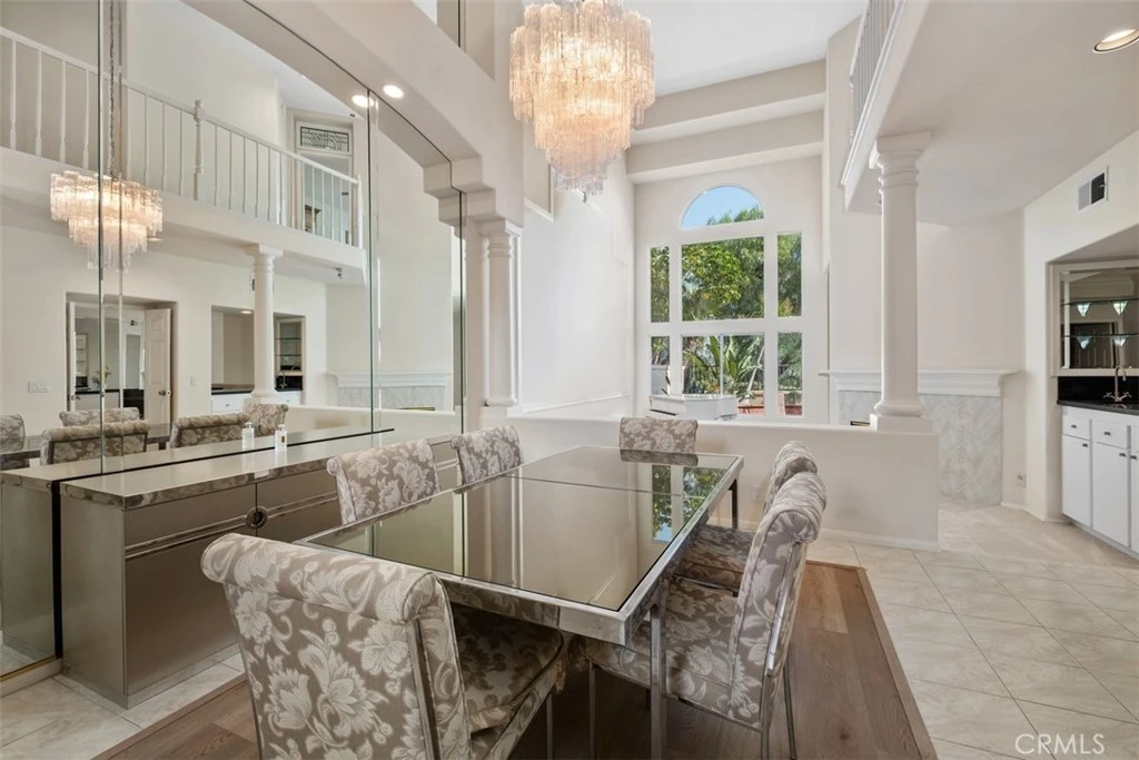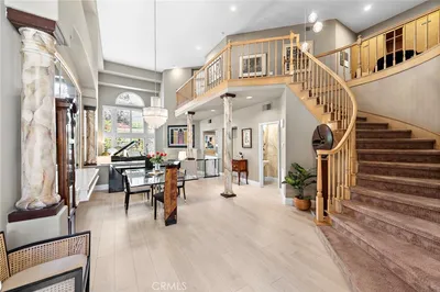A dramatic entry welcomes abundant natural light through expansive windows and soaring 18-foot ceilings, immediately highlighting the home’s gorgeous open design—both comfortable for everyday living and elegant for entertaining. Nestled within the exclusive gated community of Bella Vista on one of its most coveted view lots, this beautifully updated residence offers over 2,500 square feet of thoughtfully designed living space, including three bedrooms, two-and-a-half bathrooms, a versatile loft, and a rare three-car garage. The formal living room is anchored by a fireplace and framed by stunning two-story windows, while the adjoining dining room features refined architectural details ideal for hosting. Recent renovations throughout the home add a fresh, modern feel while preserving timeless elegance. The gourmet kitchen showcases custom cabinetry and a generous casual dining area that flows seamlessly into the family room, complete with a second fireplace and direct access to the backyard. Upstairs, the primary suite serves as a private retreat with its own fireplace, dual vanities, soaking tub, separate shower, and a spacious walk-in closet. Two secondary bedrooms and a flexible loft complete the upper level, perfect for a home office, media space, or lounge. The multi-level backyard opens to breathtaking views, creating a private oasis ideal for both relaxation and entertaining. Residents of Bella Vista enjoy a gated entry, community pool and spa, ample guest parking, and meticulously maintained grounds, all conveniently located near parks, hiking trails, shopping, dining, theaters, and top-rated schools. This home effortlessly blends resort-style living with everyday comfort and sophistication.