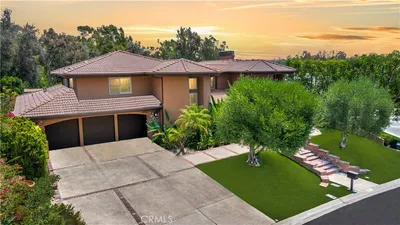 Nestled on one of Nellie Gail’s most prestigious gated cul-de-sac streets, this exceptional custom estate sits on a nearly half-acre flat lot with panoramic views and a commanding presence. A dramatic castle-like façade welcomes you into a warm, contemporary Mediterranean interior with a thoughtfully designed floor plan that blends elegance and comfort. The grand entry showcases a sweeping staircase and opens to a richly appointed executive office featuring custom built-ins, paneled walls, and a coffered ceiling. A spacious en-suite bedroom on the main level offers flexibility for guests or multi-generational living, positioned conveniently near the second staircase. The beautifully remodeled gourmet kitchen is a true showstopper, outfitted with a large center island, Sub-Zero built-in refrigerator, beverage center, and top-of-the-line appliances. The kitchen flows seamlessly into an expansive family room with a fireplace, coffered ceilings, and an impressive wet bar—perfect for both entertaining and everyday living. Upstairs, the luxurious primary suite offers a private retreat with a fireplace, steam shower, sauna, and mountain views. Two additional en-suite bedrooms and a versatile loft/bonus room complete the upper level, providing endless potential for leisure or work-from-home flexibility. The backyard is a true entertainer’s paradise, featuring a covered outdoor lounge area with a fireplace, built-in heaters, and lighting. Enjoy a resort-style pool and spa, built-in BBQ, grassy play area, and captivating views—all in complete privacy.