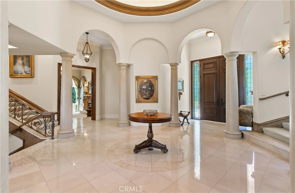 Breakfast Bar, Built In Features, Balcony, Crown Molding, Eat In Kitchen, Granite Counters, High Ceilings, In Law Floorplan, Multiple Staircases, Open Floorplan, Pantry, Pull Down Attic Stairs, Quartz Counters, Stone Counters, Recessed Lighting, Smart Home, Sunken Living Room, Bar, Bedroom On Main Level, Dressing Area, Entrance Foyer