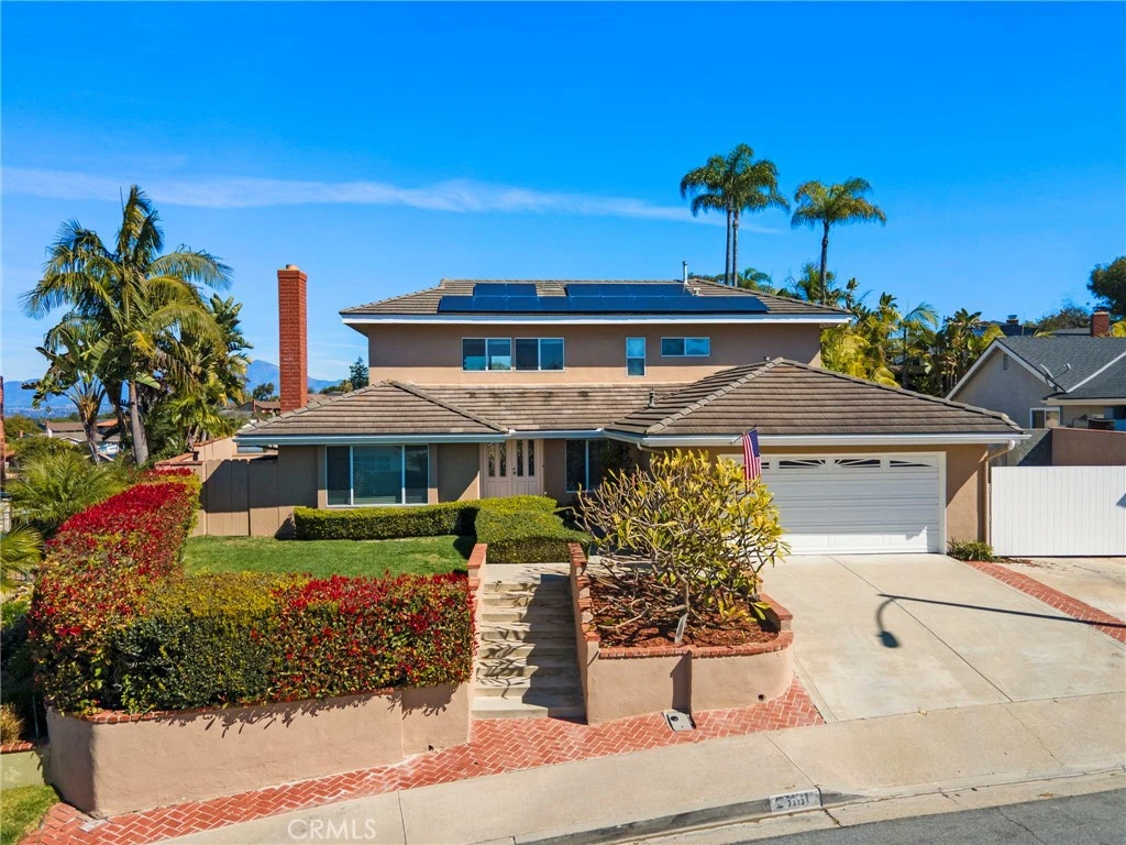 Enjoy panoramic mountain, city light, and seasonal snow-capped views from nearly every room in this beautifully custom-remodeled 5-bedroom, 4-bath residence, ideally situated on a quiet cul-de-sac in Laguna Niguel with no HOA. Designed for both comfortable everyday living and exceptional entertaining, the home features a spacious great room with a built-in bar complete with refrigerator, sink, and dishwasher, seamlessly opening to an expansive view deck—perfect for morning coffee or evening sunsets. The upper-level primary suite offers a true retreat with a private view deck and a well-appointed en-suite bath featuring dual vanities with granite countertops, a Jacuzzi tub, and a large walk-in shower. A secondary primary suite on the main level includes a walk-in closet, en-suite bath, and direct access to the backyard. The private backyard is an entertainer’s dream, showcasing a resurfaced pool and spa (2023) and a fully equipped outdoor kitchen with grill, cooktop, sink, refrigerator, and generous prep space. A large grassy area and outdoor heaters provide year-round enjoyment. The custom kitchen overlooks the backyard and features solid wood cabinetry, a five-burner gas cooktop, built-in microwave, walk-in pantry, and included refrigerator, with direct access to a covered patio with built-in gas heater for effortless indoor-outdoor living. Additional highlights include a custom fireplace, built-in surround sound throughout the home and backyard, and a versatile storage area under the staircase ideal for a wine cellar. Four bedrooms are located on the main level, along with a laundry room (washer and dryer included) and ample linen storage. Energy-efficient upgrades include owned solar, new tankless water heater, new dual-zone A/C, and full PEX re-pipe. The two-car garage offers built-in cabinetry, a workbench, and attic storage. Additional features include RV parking and a driveway accommodating up to three vehicles. Conveniently located just minutes from Dana Point Harbor, world-class beaches, shopping, and dining, this home offers the best of coastal Southern California living.