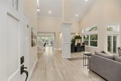 Available NOW! FURNISHED RENTAL - Beautifully remodeled light and bright home! This stunning 4 bedroom 3 bathroom home has an open floor plan and abundant windows with amazing Canyon Views. It features a Chefs kitchen with granite counters, recessed lighting and high end stainless steel appliances. The entry opens to the living room and dining room spaces. Off the kitchen is a breakfast nook as well as stairs leading down to the family room and one bedroom and full bath. Upstairs are three bedrooms, one of which is a spacious primary suite with an attached sitting room. The primary suite also has a balcony overlooking the backyard and view. The two additional upstairs bedrooms share a full bath off the hallway. Indoor/outdoor living on a large 7800 sqft lot with a swimming pool, spa, water feature, built in BBQ and fire pit, landscaping and gardens. Located in 24 hour gated Rolling Hills with a private 5 acre park with pools, tennis courts, basketball courts, Sand Volleyball Courts and walking/biking trails. This gated community is close to freeways, restaurants, shopping, and beaches. Rates vary based on season $12,000 summer (June, July, August)