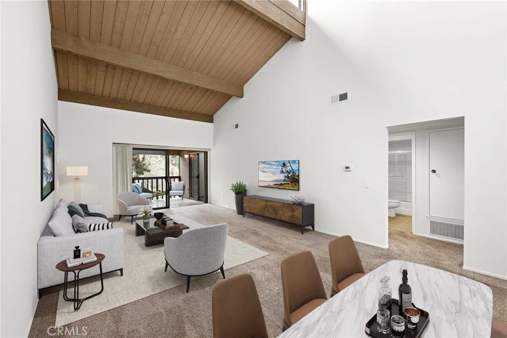 Nestled in the highly desirable East Nine Community, this stunning upstairs condominium enjoys a prime, tranquil setting with incredible views of the lake and El Niguel Golf Course. From the moment you arrive, the home’s peaceful surroundings and elevated position offer a sense of privacy and relaxation, with a welcoming balcony and outdoor patio space perfect for taking in colorful sunsets and the serene landscape. Step inside to a bright, open floor plan with soaring 10-foot ceilings, abundant natural light, and an expansive flowing layout enhanced by plenty of windows and skylights. New carpet throughout. The spacious, interconnected living areas create a fluid and functional environment ideal for both everyday living and entertaining. Graceful style is displayed throughout the interior with warm, harmonizing colors that create a comfortable and inviting atmosphere. The home offers 2 bedrooms and 2 baths, with a thoughtfully designed layout that places the bedrooms on opposite sides of the residence to provide maximum privacy. The inviting primary suite is tastefully appointed with its own en suite bath and direct access to the patio, creating a peaceful retreat. This private residence is all on one level and also includes a convenient laundry closet located off the patio area. A large detached garage is located just steps away, along with ample guest parking. Residents enjoy a resort-style lifestyle with community amenities that include a sparkling pool, relaxing spa, and BBQ area, while the HOA covers water, trash, roof, exterior maintenance, and landscaping. Ideally located near El Niguel Country Club, Salt Creek Beach, scenic bike trails, tennis courts, Waldorf Astoria Monarch Beach Resort, The Ritz-Carlton, Dana Point Harbor, Laguna Beach, and a variety of shopping and dining options, the home also offers easy access to the freeway and toll road, making coastal living both beautiful and convenient.