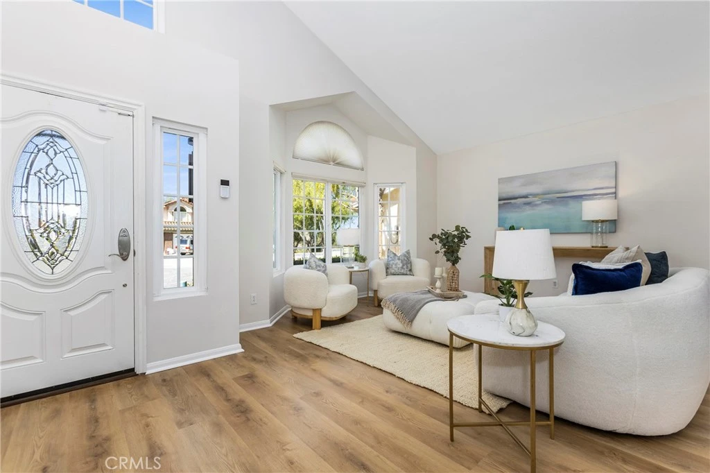 VIEWS VIEWS VIEWS- END OF CUL DE SAC WITH HUGE LOT. Welcome to 4 Precipice with an oversized premium lot, this 3 bedroom, 2.5 bath home with a 3-car garage captures sweeping Saddleback Mountain and valley views with exceptional privacy and usable outdoor space — a rare combination in Laguna Niguel. Set above rolling greenbelts and natural open space, the property offers panoramic vistas stretching across the canyon and surrounding ridgelines. The expansive backyard features a large grass lawn, mature landscaping, and an extended patio area ideal for entertaining, outdoor dining, or enjoying the peaceful setting. With generous lot dimensions and no homes directly behind, the yard provides both openness and seclusion. Inside, soaring ceilings and abundant natural light create an airy, welcoming atmosphere. Large windows frame scenic outlooks and enhance the home’s connection to its elevated setting. The formal living and dining areas offer comfortable gathering spaces, while wide-plank luxury vinyl flooring flows seamlessly throughout, adding both durability and modern appeal. The kitchen overlooks the backyard and views, featuring granite countertops, warm wood cabinetry, ample storage, and a functional layout that opens to adjacent living spaces. The family room is anchored by a classic brick fireplace and sliding doors that open to the patio, creating effortless indoor-outdoor living. Upstairs, view-facing windows continue to highlight the surrounding landscape, offering tranquil perspectives from the private bedroom spaces. The primary suite enjoys natural light and scenic outlooks that reinforce the home’s stunning views. Notable improvements include luxury vinyl plank flooring throughout, designer interior paint, newer windows, and a complete home re-pipe, providing both aesthetic appeal and long-term peace of mind. With its end-of-cul-de-sac location, oversized lot, 3-car garage, meaningful upgrades, and panoramic hillside views, 4 Precipice presents a rare opportunity to own a private, view-oriented property in one of Laguna Niguel’s most desirable settings.
