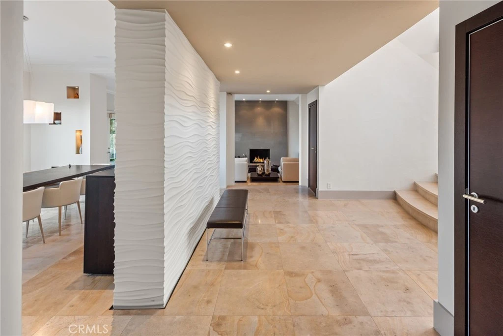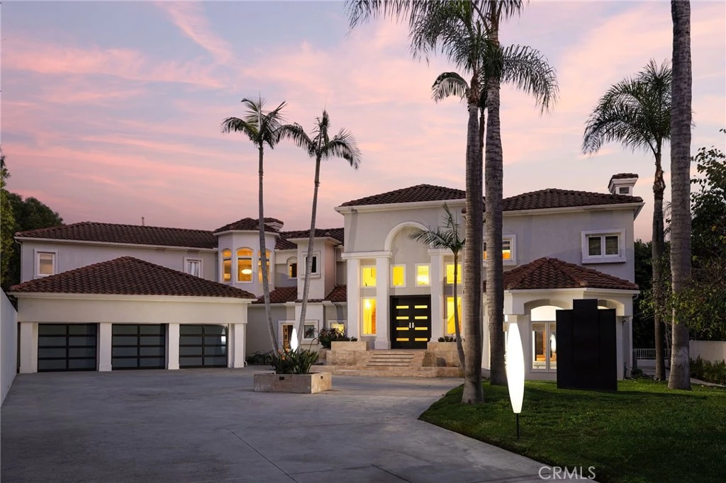 Situated within the prestigious guard-gated enclave of Bear Brand Ranch, this exceptional property awaits, within its own private gated compound, boasting breathtaking views of the ocean and city lights nestled in the valley below. As you step through the private gate, a grand motor court and verdant landscaping extend a gracious welcome. Upon entering, guests are welcomed by a grand entrance featuring dual stone-wrapped floating staircases, unveiling an extraordinary modern masterpiece. The main level offers a plethora of entertainment spaces, including a grand formal living area, and a cozy family room complete with an indoor bar opening to an entertainer's dream backyard. The outdoor area offers an array of amenities, including a pool, inviting spa, a stylish outdoor bar complete with a built-in BBQ, convenient pool bath facilities, and a cozy fire pit area for gathering and relaxation. Ascend to the upper level and indulge in the lavish primary retreat, where panoramic views await alongside a sprawling seating area, a capacious walk-in closet, dual vanities, a luxurious jacuzzi tub, and your own private balcony. Accompanying this haven are three additional secondary bedrooms, along with a well-appointed gym featuring a soothing sauna, ensuring an unparalleled experience of luxury and comfort. Other notable features include a private office, a 1,200-bottle temperature-controlled wine cellar, an Elevator servicing both floors, and a convenient main floor bedroom.
