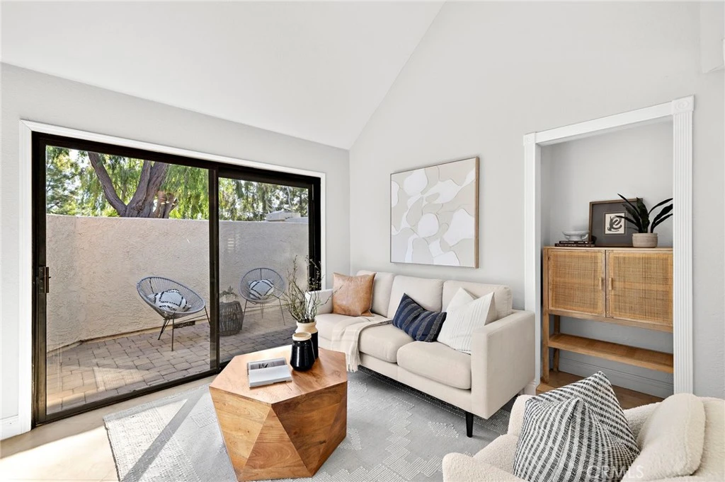 There is something undeniably special about this residence in Crystal Cay. As the community’s most coveted end unit and its largest floor plan, the home immediately sets itself apart with light, volume, and a rare sense of breathing room. It is also the only property in the neighborhood to offer a full wraparound patio, an outdoor extension of the living space that feels made for slow mornings, unhurried evenings, and everything in between. Inside, the main level is bright and airy, grounded by vaulted ceilings, a skylight, and an intuitive layout that feels effortless from the moment you arrive. The kitchen features white shaker cabinetry, stainless steel appliances, and granite counters. One of the bedrooms is thoughtfully positioned on the main level, providing welcome versatility for guests or multigenerational living. The home has been fully repiped, and the carpet is less than one year old, offering peace of mind and a truly move in ready experience. Upstairs, the loft opens with a sense of volume and character. A fireplace anchors the space, while a dedicated closet makes it easy to imagine this as a third bedroom, office, or a quiet retreat at the end of the day. The second bedroom continues the home's composed aesthetic with abundant light and an adjoining dressing area and bath. Crystal Cay itself is known for its tree lined pathways, gentle coastal air, and a relaxed rhythm that feels distinctly Southern California. Residents enjoy two pool and spa areas and nearby walking trails. Across the street, a convenient shopping village offers dining, retail, and daily services, and freeway access is within five minutes. Downtown Dana Point, Dana Point Harbor, and Salt Creek Beach are all just five miles from your door, placing you in the heart of exceptional coastal recreation, shopping, dining, and everyday convenience. This end unit brings together the comforts of thoughtful interior design with an outdoor experience rarely found in the community, offering a lifestyle shaped by ease, connection, and the natural beauty of coastal Southern California.