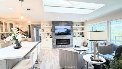 Completely remodeled single level home in Laguna Woods a 55+ community. Greenbelt location, no one above or below. The kitchen features quartz countertops & stainless steel appliances and is perfect for entertaining with a center island that opens to the family room and dining areas. A skylight was added over the island & brings in extra light. The floor plan was completely redesigned. The primary bedroom now contains a spacious walk-in closet, all ceilings raised to one level & a new laundry area. Both bathrooms have sleek touches including designer ceramic tile, lighting, & two-toned designer paint. Both showers are Walk-in showers with no steps to climb over. Triple sliding glass doors lead out to a delightful patio that captures the morning sun & offers shade in afternoon. Beautiful greenery surrounds the patio area. The home offers an opaque glass front door, wide plank engineered wood floors, recessed lighting, dual panel vinyl windows, TV & cable hookups in bedroom & living room, forced air heating and air conditioning, new electrical throughout! All the Laguna Woods Amenities too! ***New Pro pictures coming soon!***