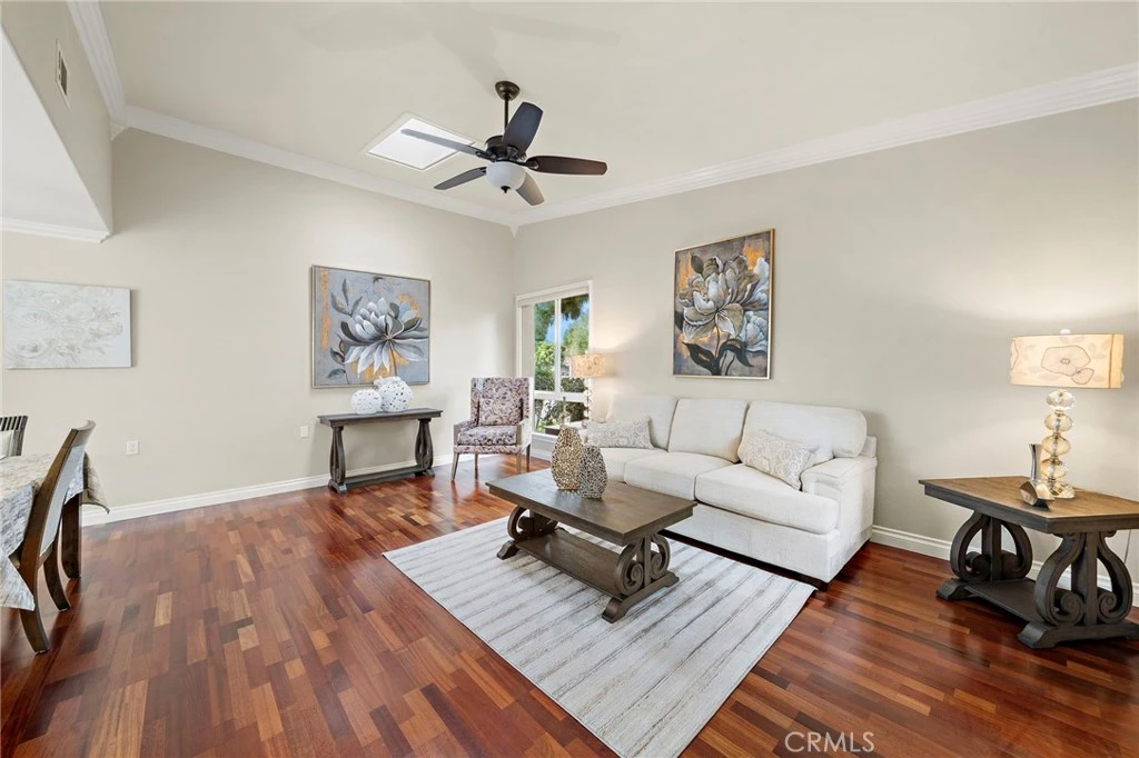 OUTSTANDING LOCATION CLOSE TO THE CREEK for this Granada coop in the premier age 55 and over community of Laguna Woods. Some of the features include: 2 BEDROOMS - 2 BATHROOMS - ENCLOSED PATIO/BONUS ROOM - SINGLE STORY - NO STEPS - NO STAIRS - END UNIT - NO ONE ABOVE or BELOW - INSIDE LAUNDRY - CENTRAL A/C AND HEAT - WOOD LOOK FLOORING - REMODELED KITCHEN - REMODELED BATHROOMS - WHITE VINYL WINDOWS - VAULTED AND SMOOTH CEILINGS - ATRIUM - SKYLIGHTS - JUST INSTALLED CARPET IN THE BEDROOMS - WAINSCOATING - CROWN MOLDING. As you enter through the front door, you find soaring vaulted ceilings with plenty of space in the living room. The kitchen has been remodeled with granite counters and white cabinets. The dining room looks on to the private and tranquil atrium. The primary bedroom features an en-suite bathroom and access to the enclosed patio. The second bedroom is the perfect size for an office, craft room, den or guest room. Both bathrooms have been remodeled with granite counters and white cabinets. There is a stackable laundry in the hall. The enclosed patio is great for another living space, bonus room, office, art studio or more! Laguna Woods is one of the most prestigious 55+ communities in Orange County with: bus system around the community & to area shopping, restaurants, medical facilities; 5 pools & 4 hot tubs; golf, tennis, library, 7 clubhouse, 200+ clubs, 3 fitness centers, theater, horse back riding/stables, garden centers, basketball, card rooms, billiards, bocce ball, Emeritus classes & more!