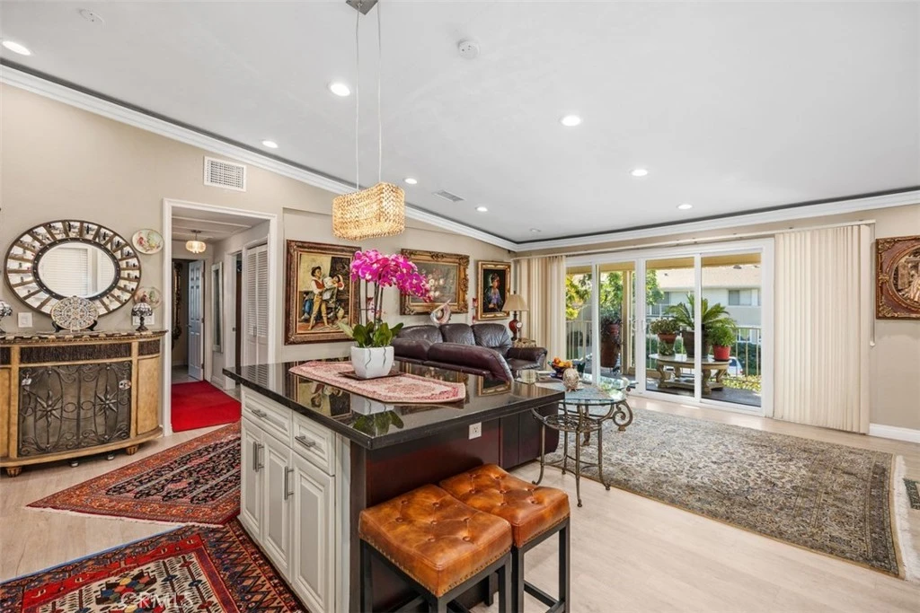 A beautiful remodeled Casa Blanca rebuilt to new heights. The Living Rooms high arched ceilings have been expanded even higher. Recessed lighting and crown molding add to the stately effect. The open kitchen blends in effortlessly with the living area and there is an added granite counter/buffet space for entertaining and family get togethers. The Central AC system is new. The owner has spared no expense in creating one of the finest upper units in LW. Having no one above you offers peace and solitude and views with cross current breezes. Steps to the popular walking trail on Aliso Creek and the popular Clubhouse 3 Theater make for a great twighlight stroll or to catch the live theater entertainment. Bathroom counters are all granite and beautifully and tastefully selected to match their living room and kitchen counterparts. Bathrooms Tiled flooring carefully chosen in artistic manner ,linen closets,Walk in showers welcolme you with the finest materials and Washer/Dryer has been relocated from master suite and into hallway closet. You really have to step inside this uniquely designed property to feel the vibes and to relaize there reallly is no going back to a standard semi remodeled or original floorplan. Its the the perfect Laguna Woods retreat! Laguna Woods Village residents enjoy a 27-hole championship golf course, a 9-hole executive par 3 course, pickleball and tennis courts, lawn bowling, gyms, clubhouses, swimming pools, horse stables, gardening centers, artist studios, computer workrooms and classes + over 200 clubs and organizations. Within 20 minute drive to Main Beach in Laguna and short toll to Newport Fashion Island or Dana Point Harbor make this the ideal location for a Southern California retreat.