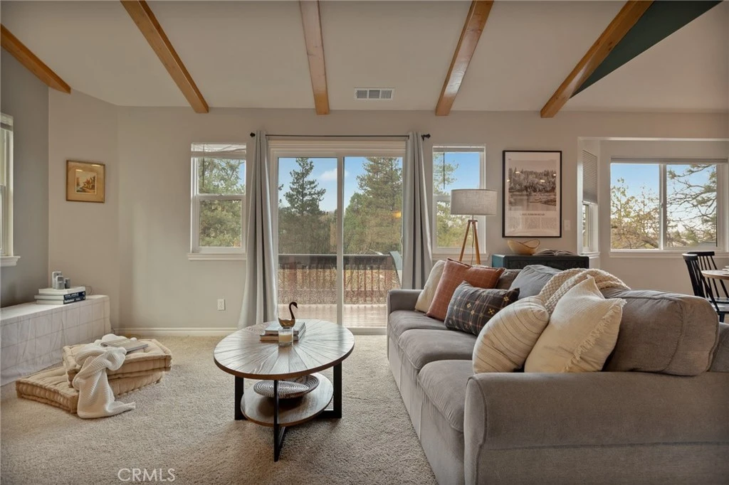 Looking for privacy? Tucked into a peaceful, secluded setting with sweeping forest and ridge-line views, this lake rights home has something for everyone. A private road leads exclusively to this level-entry property, complete with an attached single-car garage and ample easy, level parking. Love to hike? Leave from your front door! Inside, the light-filled main living level features vaulted ceilings, an open floor plan, and a welcoming living room with a gas log fireplace and half bath. A sliding door opens to a Trex deck — the perfect place to relax and take in the serene mountain surroundings and desert views. The kitchen flows into an inviting dining area with direct access to the attached garage. Downstairs, you’ll find a versatile open den with slider access to the lower deck, a full bathroom, laundry room, and three bedrooms. The generous primary suite includes its own deck access, ensuite bath with jetted tub, and walk-in closet. Built in 2005, this newer construction home is designed for low maintenance and also offers a large buildup area for additional storage. Enjoy the best of both worlds — a hidden, tranquil mountain escape that still offers convenient access to nearby shops, dining, medical services, and is within easy reach of Lake Arrowhead's private beaches and boat launch. Come live your lake house dreams!