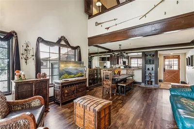 First time on the Market! Tucked in the forest in the heart of Lake Arrowhead in the magical alphabet lanes with Lake Rights and just 8 houses from the lake! This private and secluded cabin on a private road has been carefully and lovingly maintained by the original owner and embodies the perfect mountain retreat. Walk to the Lake path and Lake in less than 5 minutes. Walk to the village! Starting with the woodsy exterior and continuing into the interior where natural light, skylights, forest textures and stone make this home the one you have been waiting for! Spacious living area with soaring cathedral ceiling, converted gas Fireplace and skylights and windows to bring the forest in! The beautiful stone and brick floor-to-ceiling fireplace is the home’s centerpiece showcasing the rare beauty of natural stone and providing the perfect gathering space for friends and family. Directly outside is a large, inviting deck with areas for al fresco dining, reading, watching the wildlife or just listening to the breeze rustling through the pines. Beautiful forest views! The living area flows into the open dining area and kitchen with pantry with décor that mirrors nature’s crisp and warm forest hues. Hardwood flooring in the entry and kitchen and dining area complement the home with its warm wood texture. The primary ensuite is a private sanctuary with a beautiful stone gas fireplace, private deck with swing and attached full bath. Downstairs are also two private bedrooms or opportunities to pursue your private lifestyle choices for studios, fitness or wellness rooms and a full bath. The Laundry Room is conveniently located next to the bedrooms. The exterior of the home was freshly painted in late Fall 2025 and the interior is immaculate! There is also a Notice of Completion for all Section One Wood Destroying Pest work. Furnished per Positive Inventory List! Dual Pane windows and a spotless single car garage. There is a 2-3 car parking pad in front of the garage and additional parking below on A Lane. Most importantly, the home has lake rights to private Lake Arrowhead just a few minutes’ walk away. This woodsy hideaway would make the perfect mountain home, vacation home, rental or investment property. Come on up and enjoy the fresh mountain air and all Lake Arrowhead has to offer – the beautiful, private lake, the newly renovated Lake Arrowhead Village, Sky Park, Snow Valley Ski Resort and acres of National Forest. Make your Lake Arrowhead Dream a Reality!