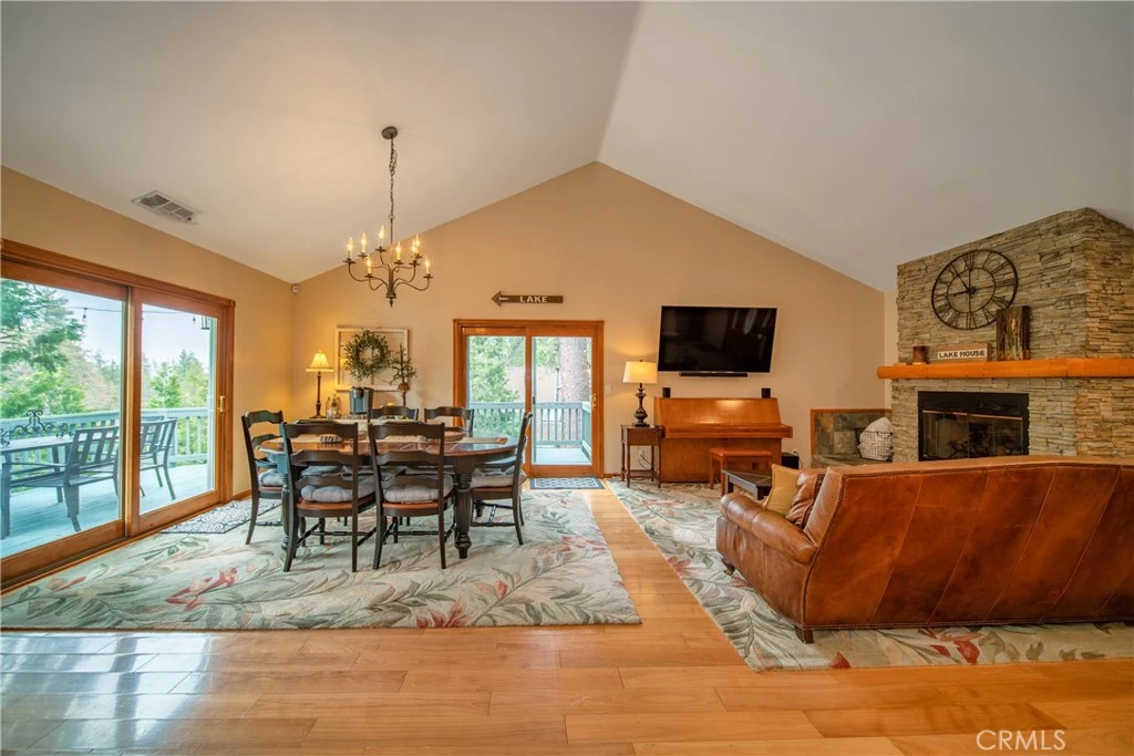 It's the Lake Arrowhead gem you don’t want to miss! SELLER IS READY TO DEAL – Making this turnkey cabin an even bigger steal! Turnkey Lake Arrowhead cabin with lake rights, no steps at entry, and a main-level primary suite—offered by a motivated seller! Inclusions: All Appliances, Most Furniture, Basic Kitchenware, Basic Linens, Snowblowers, Generator, Outdoor Furniture, tankless water heater, home security and automation water filter! Exclusions: Wall Hangings, Personal Items, Anything in closets, Piano. Ideally located within walking distance to the lake and Blue Jay Village, this thoughtfully designed home features two spacious primary suites, soaring ceilings, a beautiful stone fireplace, and large windows showcasing peaceful forest views. Enjoy great curb appeal with log siding, a wraparound porch, and a bold front door. SELLER SAYS: SELL IT!